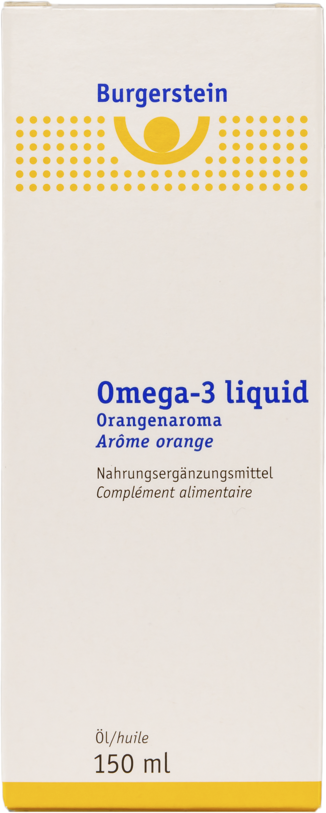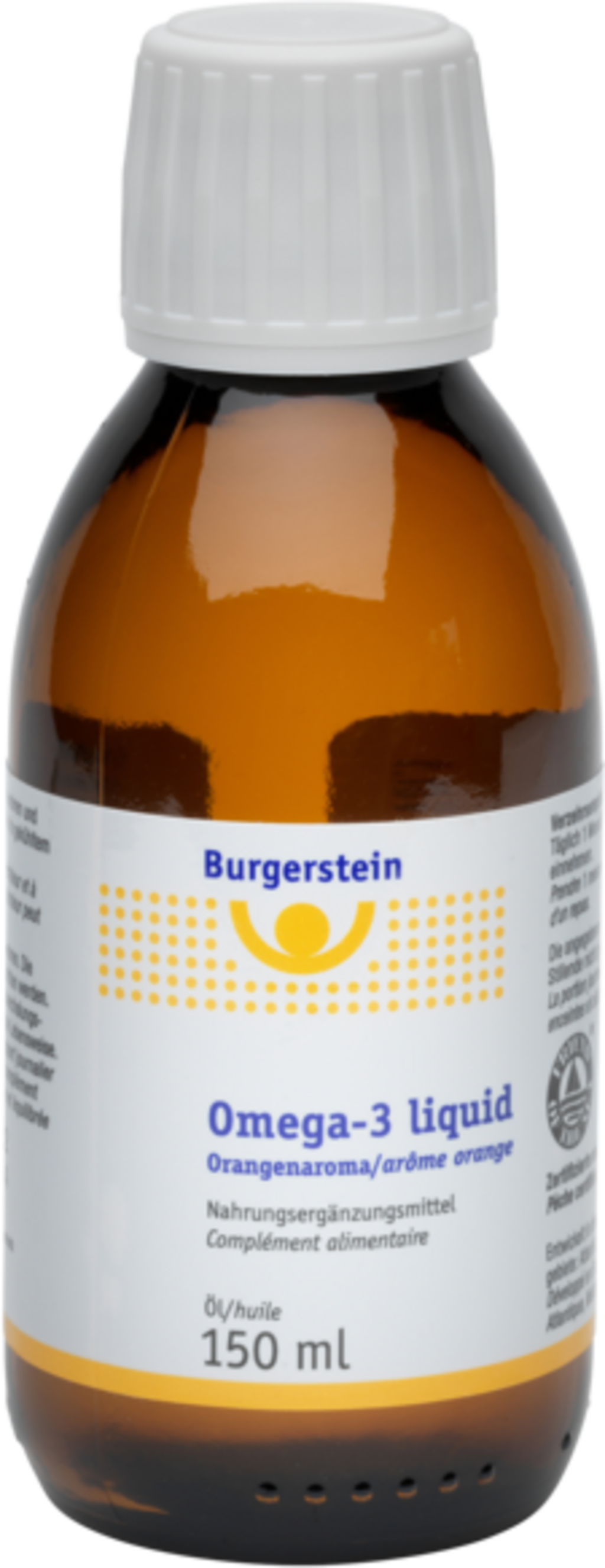 Wer den Fischgeschmack anderer Omega-3-haltigen Öle unangenehm findet, greift zu Omega 3 Liquid von Burgerstein. Dank natürlichem Orangenaroma schmeckt es auch Kindern. Die enthaltenen Fettsäuren können Herz, Sehkraft und Hirnfunktion unterstützen.