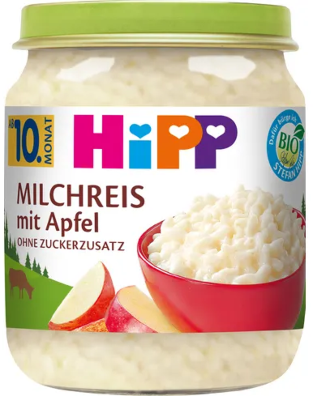 Dein Kind kann den HiPP Bio Milchreis mit Apfel ab dem 10. Lebensmonat warm oder kalt genießen. Die Rezeptur ist völlig frei von Gluten, Zuckerzusätzen, künstlichen Aromen und Farbstoffen.