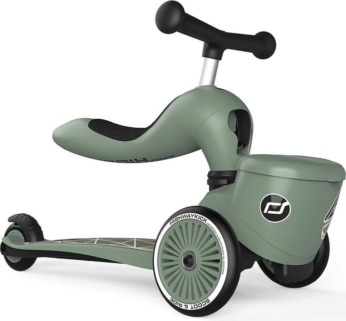 Rutschfahrzeug oder Roller - warum denn nicht beides?! Der Highwaykick 1 Lifestyle verwandelt sich sekundenschnell vom Rutschfahrzeug mit extra niedriger Sitzhöhe in einen flotten Roller. Werkzeug wird dafür nicht benötigt! Weitere Vorteile sind die ausgezeichnete Stabilität dank drei hochwertiger PU Räder. Für Lieblingskuscheltier und Co. ist an der Front ein praktischer Behälter angebracht.
