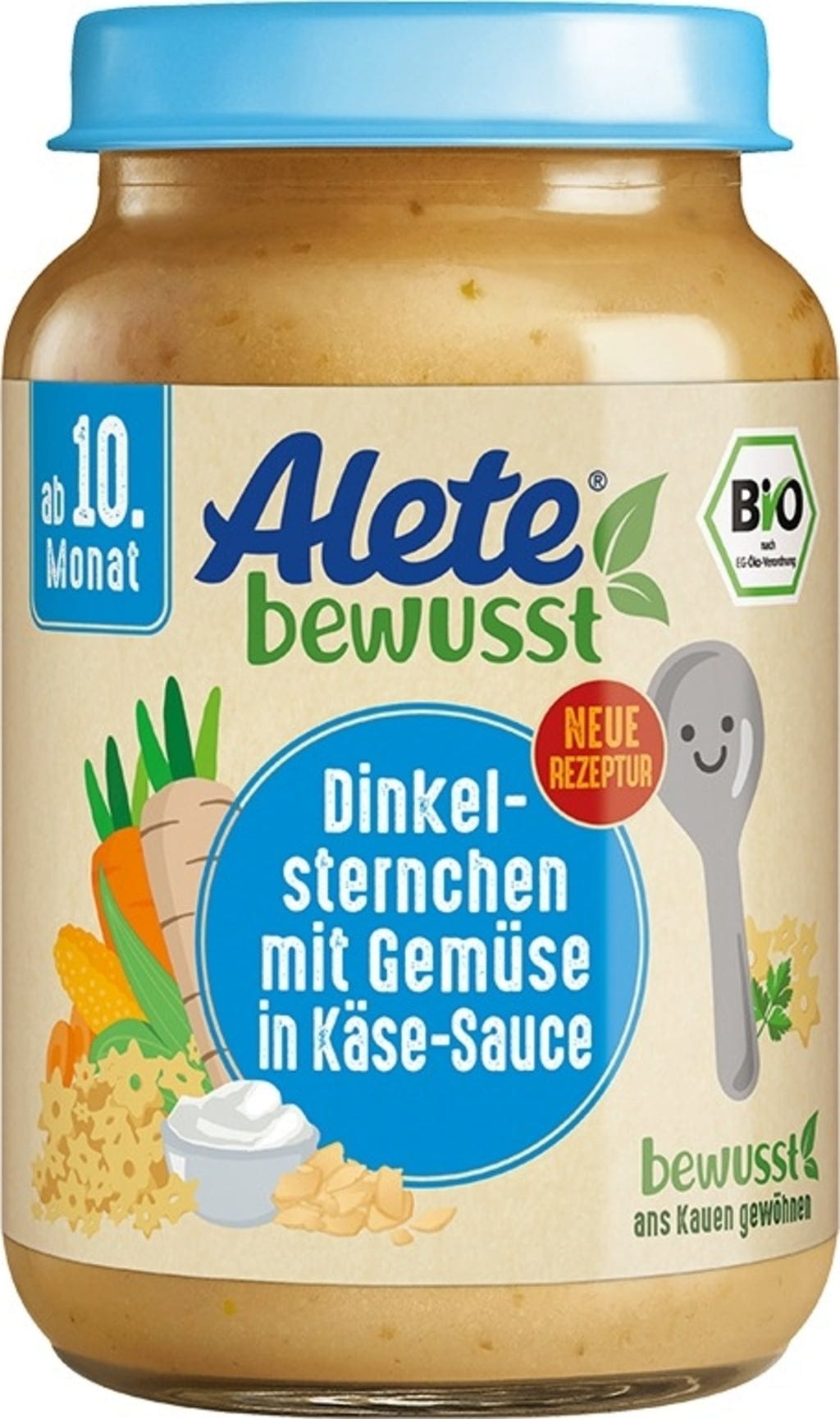 Alete bewusst Omogeneizzato Bio - Stelline di Farro con Verdure in Salsa di Formaggio, 220 g