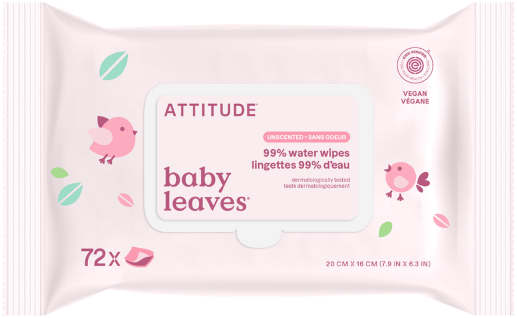 ATTITUDE baby leaves® 99% Water Wipes, 72 pz.
