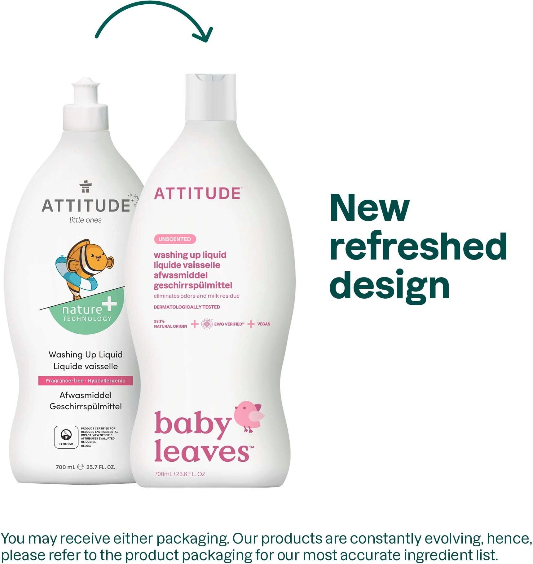 ATTITUDE Detersivo Liquido per Stoviglie dei Bambini - Senza Profumo, 700 ml