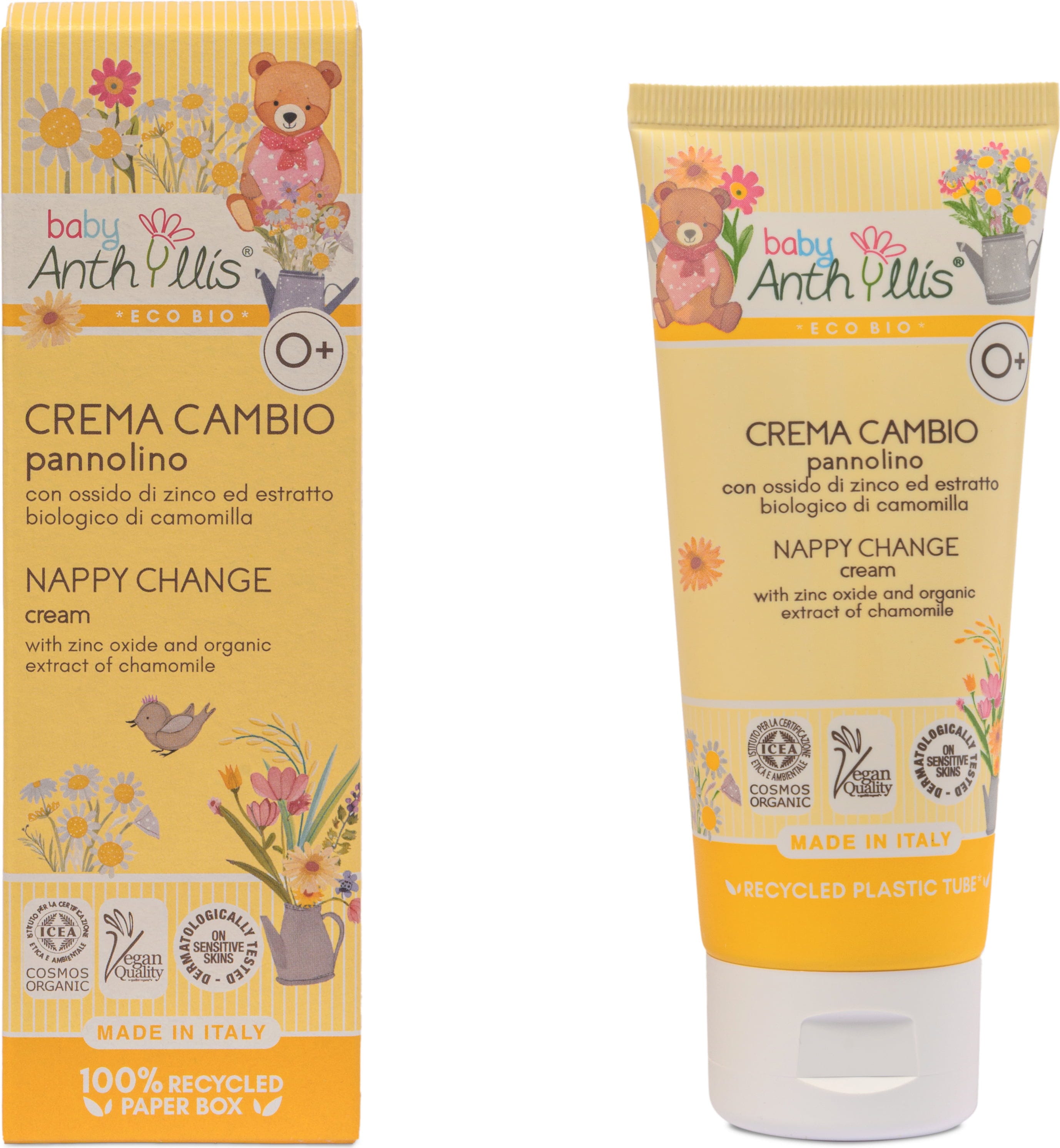 La crema per il cambio pannolino è vegana, composta al 99% da ingredienti naturali ed è perfetta per la pelle sensibile dei bambini.