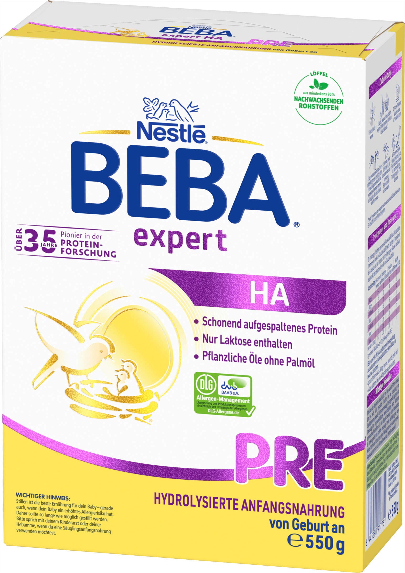 La formula per lattanti expert HA PRE è appositamente sviluppata per soddisfare le esigenze nutrizionali specifiche fin dalla nascita. È adatta sia come alimento unico che come integrazione al latte materno per tutto il tempo in cui il bambino ne avrà bisogno.