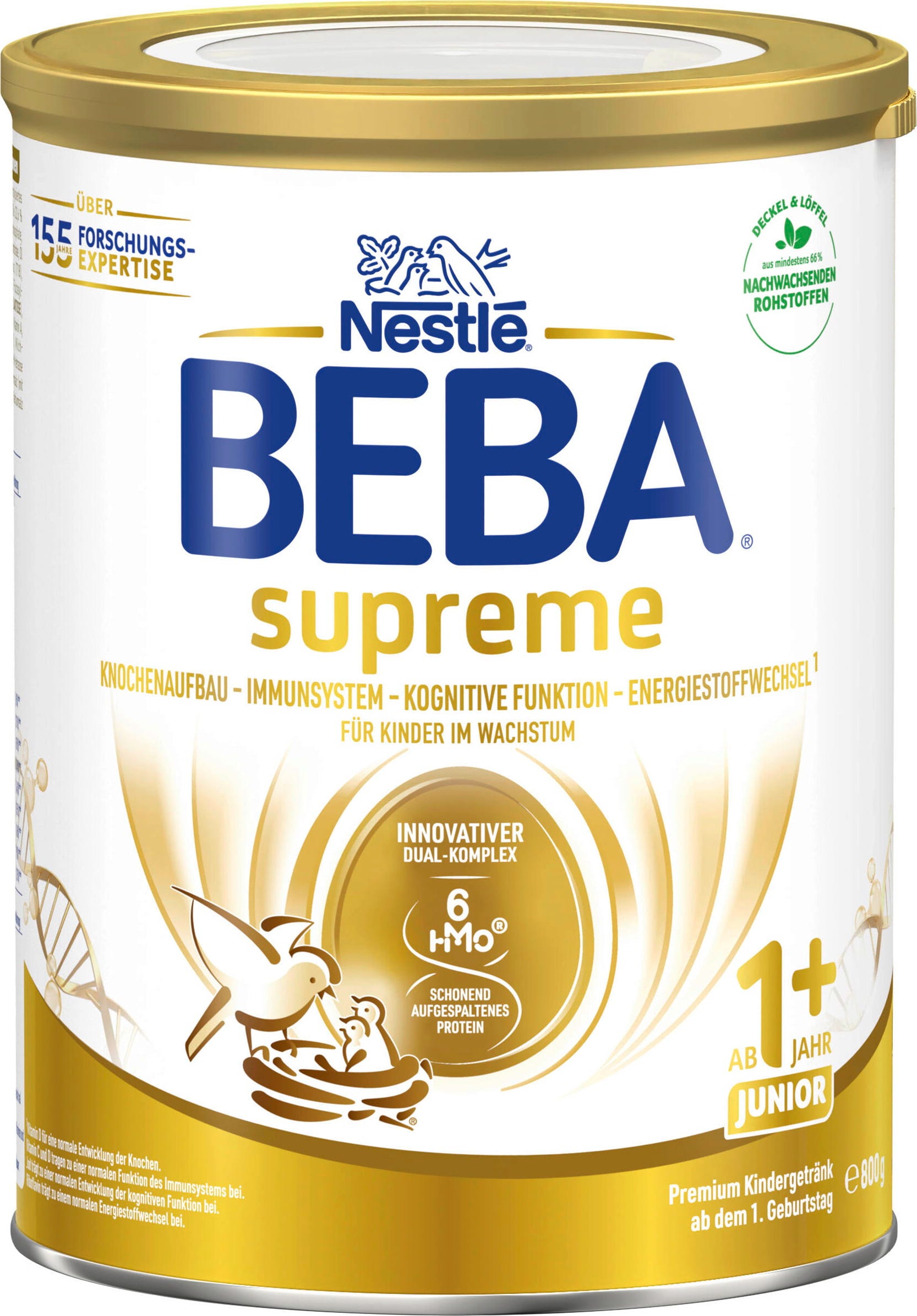 BEBA supreme JUNIOR 1+ è una bevanda a base di latte per bambini dai 12 mesi in su. È stata appositamente formulata per soddisfare le esigenze dei bambini in crescita e può essere utilizzata come parte di una dieta varia ed equilibrata.