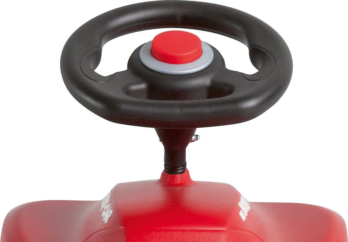 Il classico veicolo rosso brillante è ora disponibile in un nuovo look! Il design moderno ispira con la sua forma di testa di bufalo, l'animale nel logo del marchio BIG. Il telaio nuovo si ispira a quello già molto amato, ma si distingue per alcune nuove funzionalità. Ad esempio, il sedile dalla forma ergonomica ha un rivestimento antiscivolo e i quattro pneumatici extra larghi a bassa rumorosità consentono manovre di guida sicure sia in giardino che in casa, il tutto senza fare molto rumore.