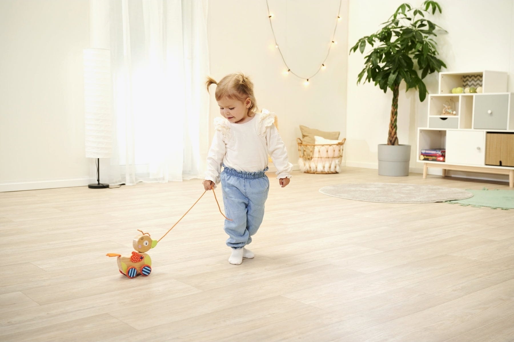 Qua, qua, qua: questa simpatica anatra è molto contenta quando la si porta a spasso. Muove anche la testa e le ali.