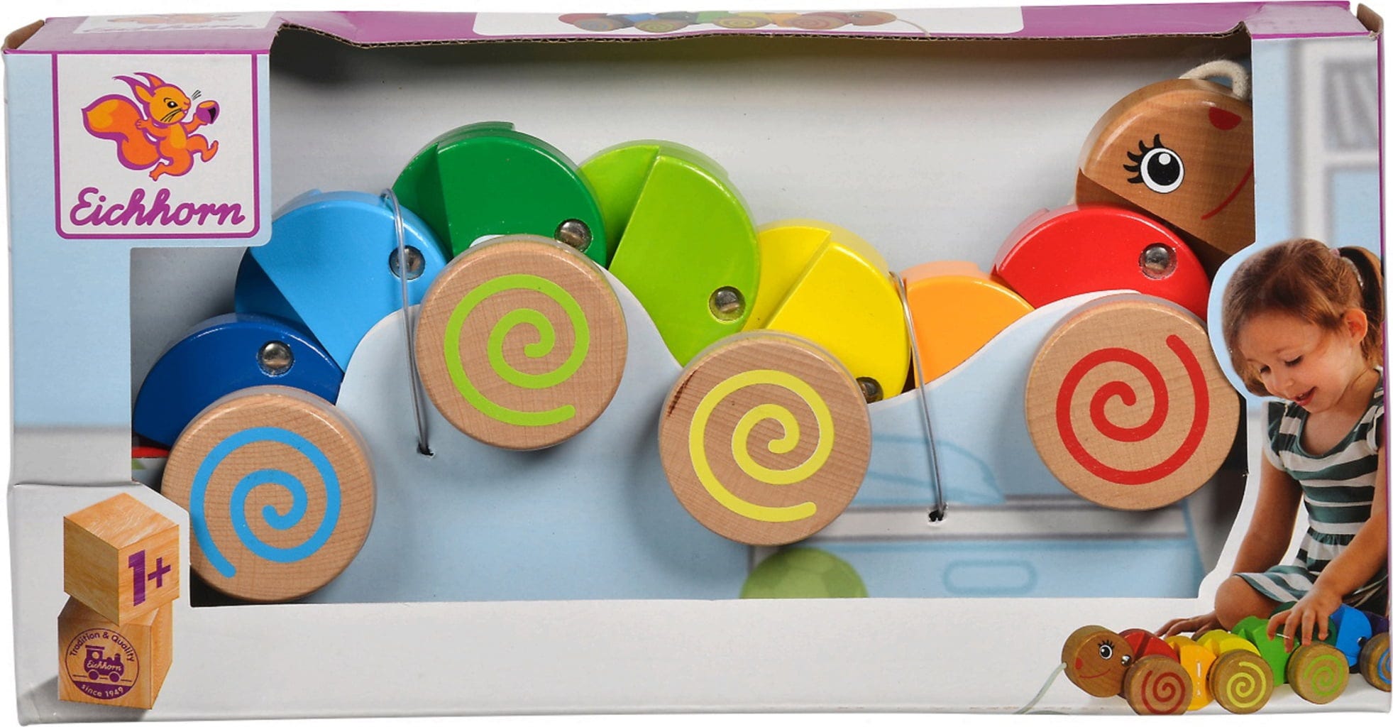 Quando questo allegro bruco si avvicina, gli occhi dei bambini iniziano a brillare. Con il suo corpo variopinto, le ruote con un motivo vorticoso e il viso amichevole, mette sempre di buon umore e risveglia la gioia del movimento.