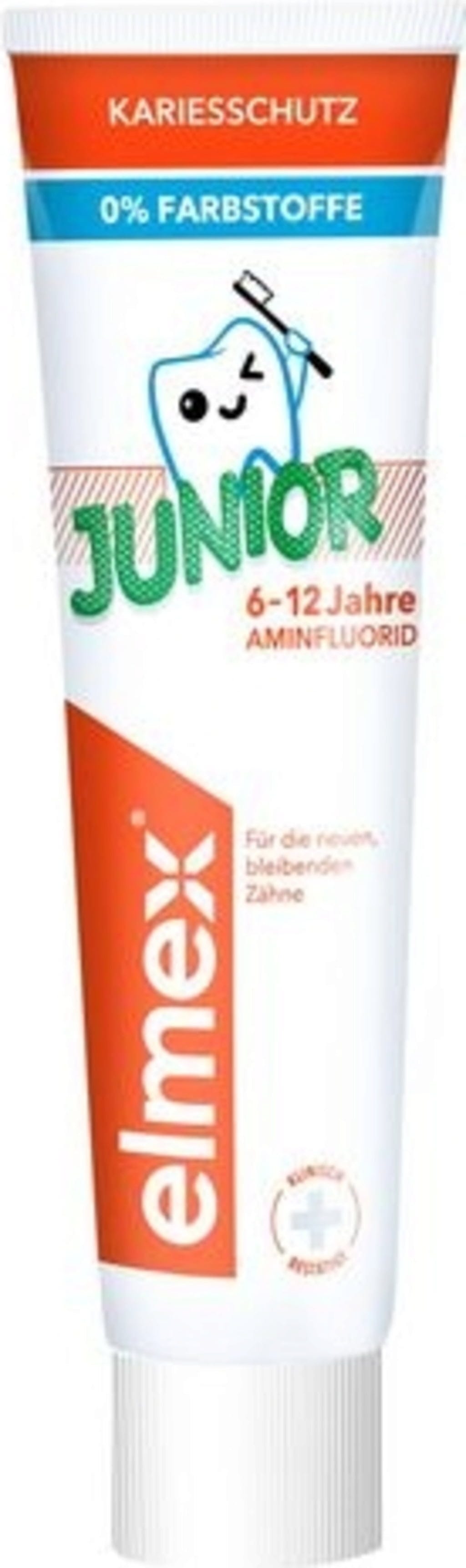 Junior - Dentifricio di elmex® è ideale per i bambini dai 6 ai 12 anni. Dal gusto delicato, pulisce i denti delicatamente e a fondo. Il fluoruro mineralizza i denti e allo stesso tempo li protegge in modo efficace dalla carie.