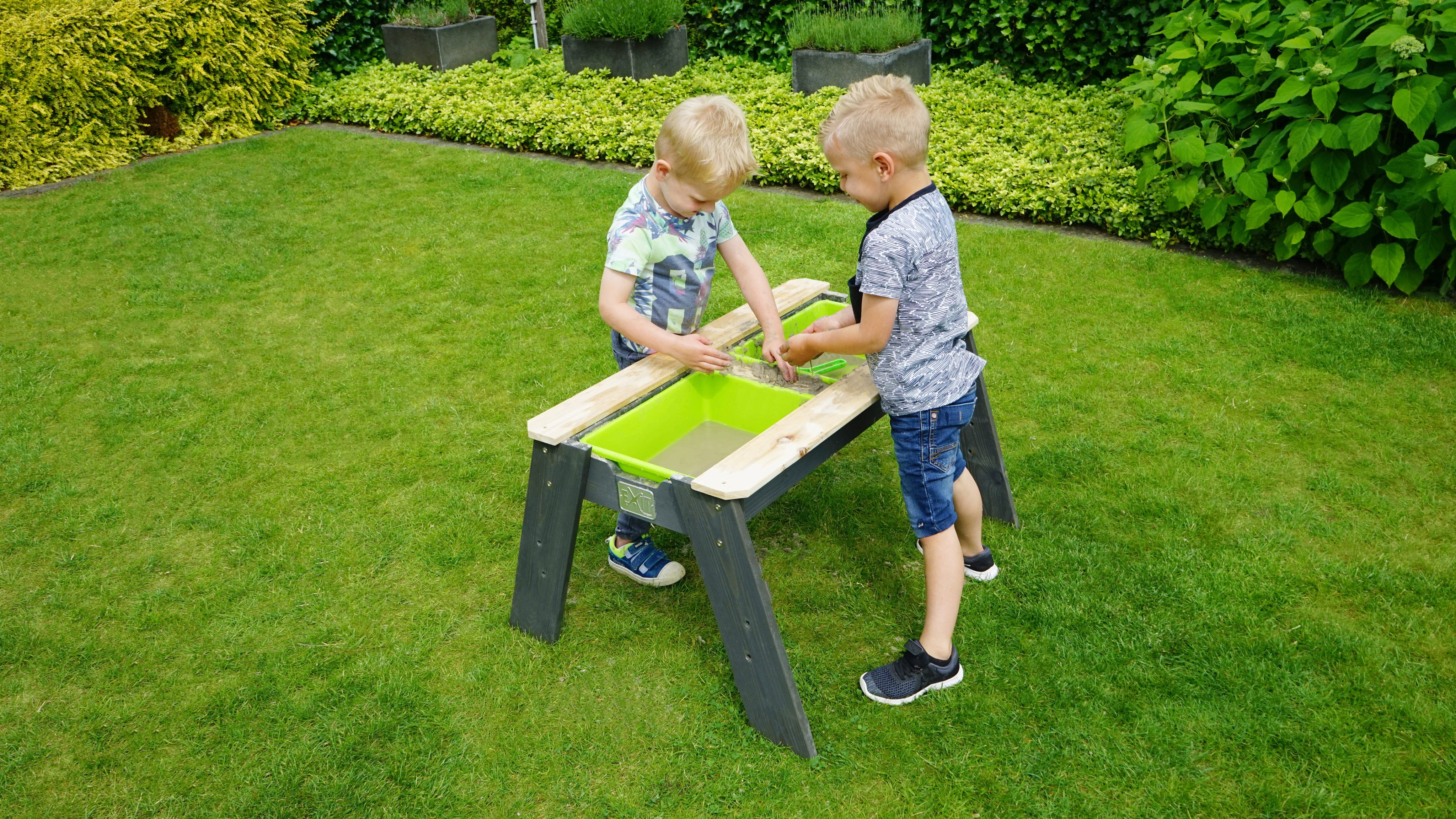 Il tavolo da gioco per sabbia e acqua Aksent di Exit Toys è un vero tuttofare per il divertimento estivo in giardino!