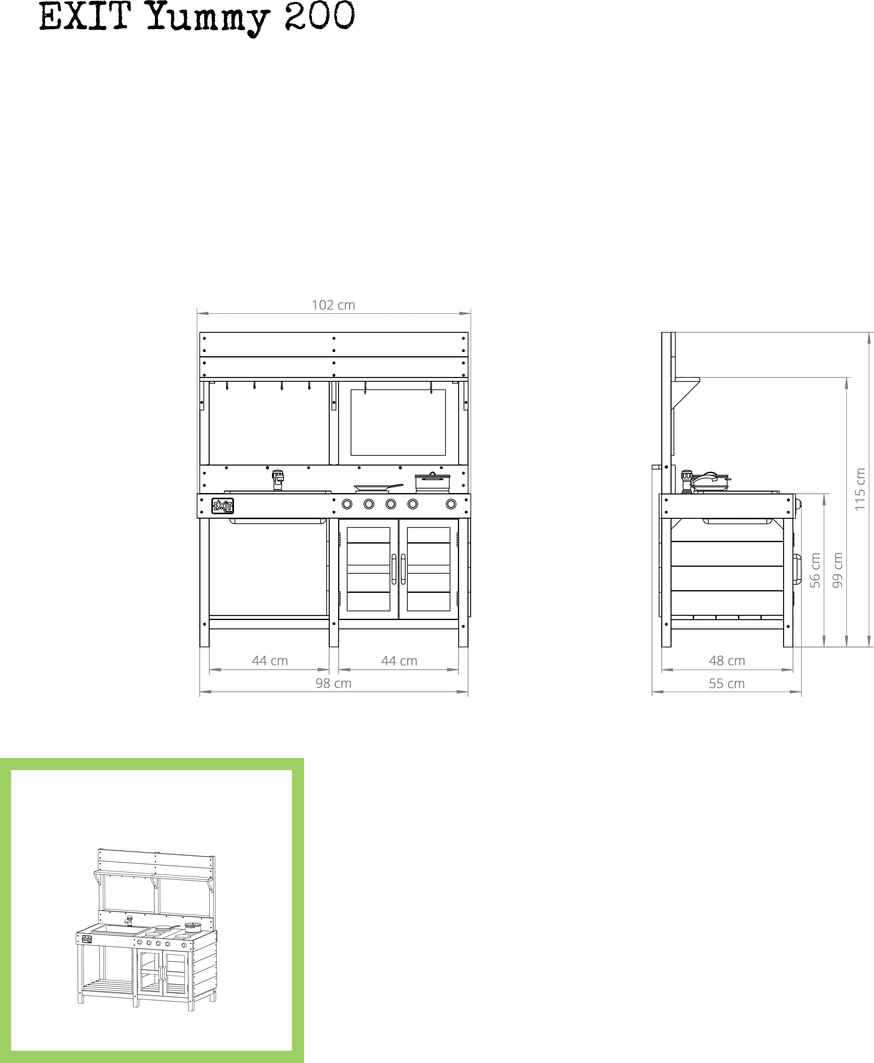 Il gioco perfetto per i piccoli gourmet e aspiranti chef! Con la cucina da esterno Yummy 200 di Exit Toys, il giardino diventa il luogo ideale per avventure culinarie e di gioco fantasiose!