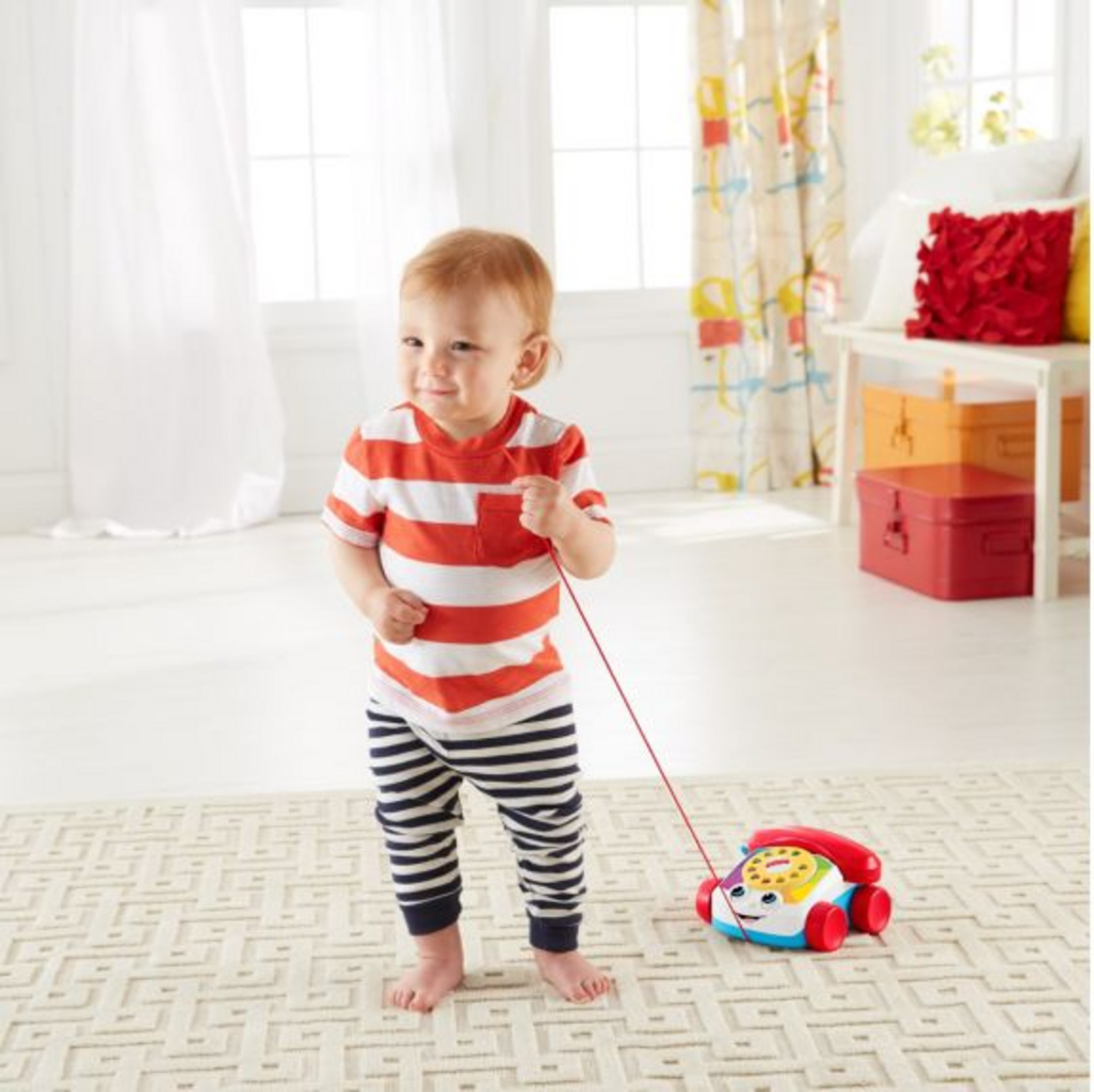 "Pronto, chi parla?" Il divertimento è assicurato con questo adorabile telefono. Quando lo tiri, il telefono inizia a borbottare allegramente e quando giri il disco, senti uno squillo. Un classico dei giocattoli che ti mette sempre di buon umore!