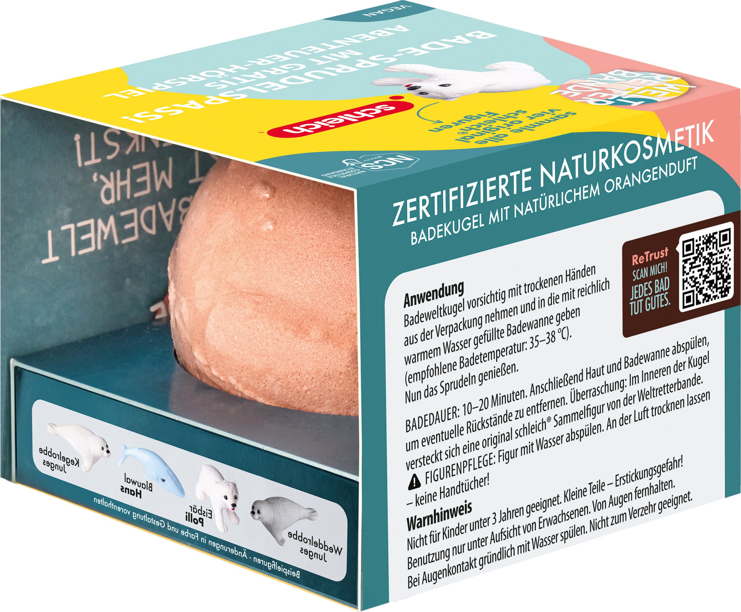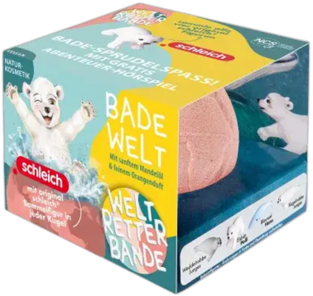 Questa bomba per il bagnetto non solo aggiunge un tocco di originalità al momento del bagno, ma contiene anche una sorpresa: una statuetta da collezione originale Schleich. Il delicato olio di mandorle nutre la pelle, mentre la delicata fragranza d'arancia dona una sensazione di benessere. All'interno della confezione, troverai affascinanti curiosità sulla vita marina e un codice QR da scansionare, che ti condurrà a un'app interattiva e ad accattivanti audiodrammi (in tedesco).