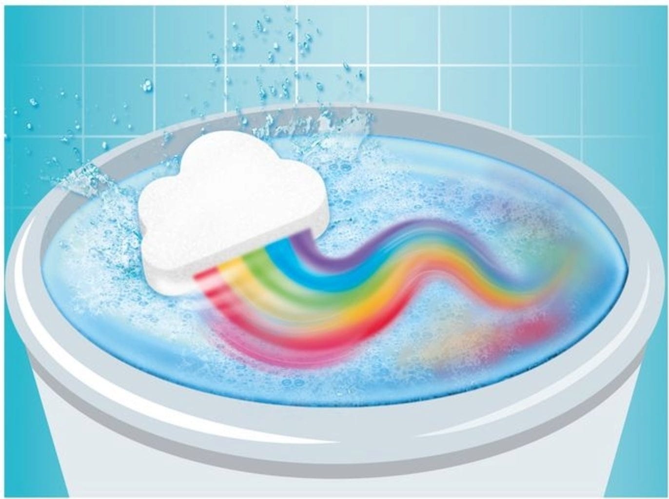 Vola, arcobaleno colorato, vola! Se metti la nuvola nell'acqua della vasca, puoi vedere come si crea un arcobaleno dai colori meravigliosi, uno spettacolo colorato che dura circa 10 minuti. Testato dall'istituto indipendente Dermatest e risultato assolutamente innocuo.