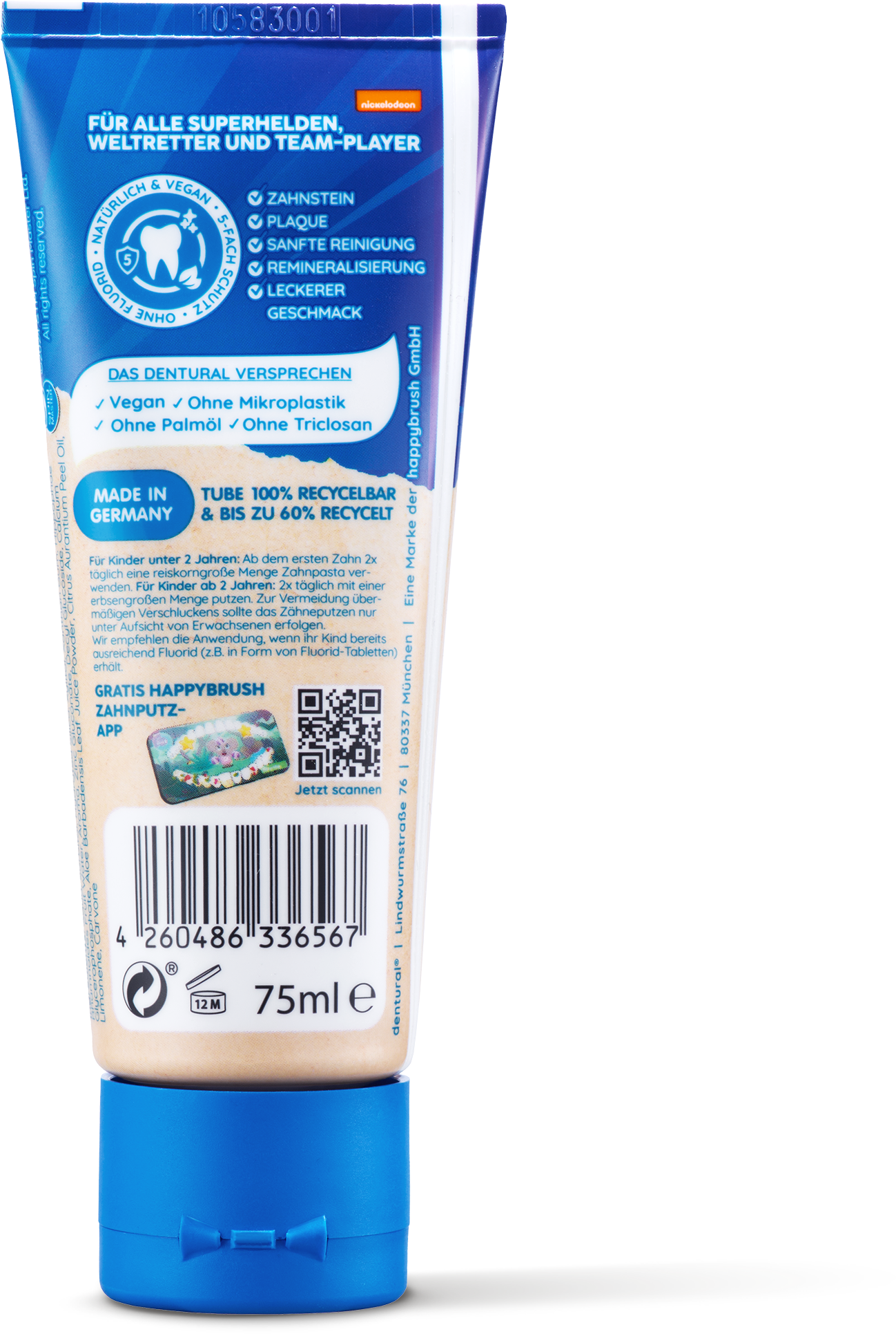happybrush KIDS - Dentifricio denural® Primi Denti, senza Fluoruro, 75 ml