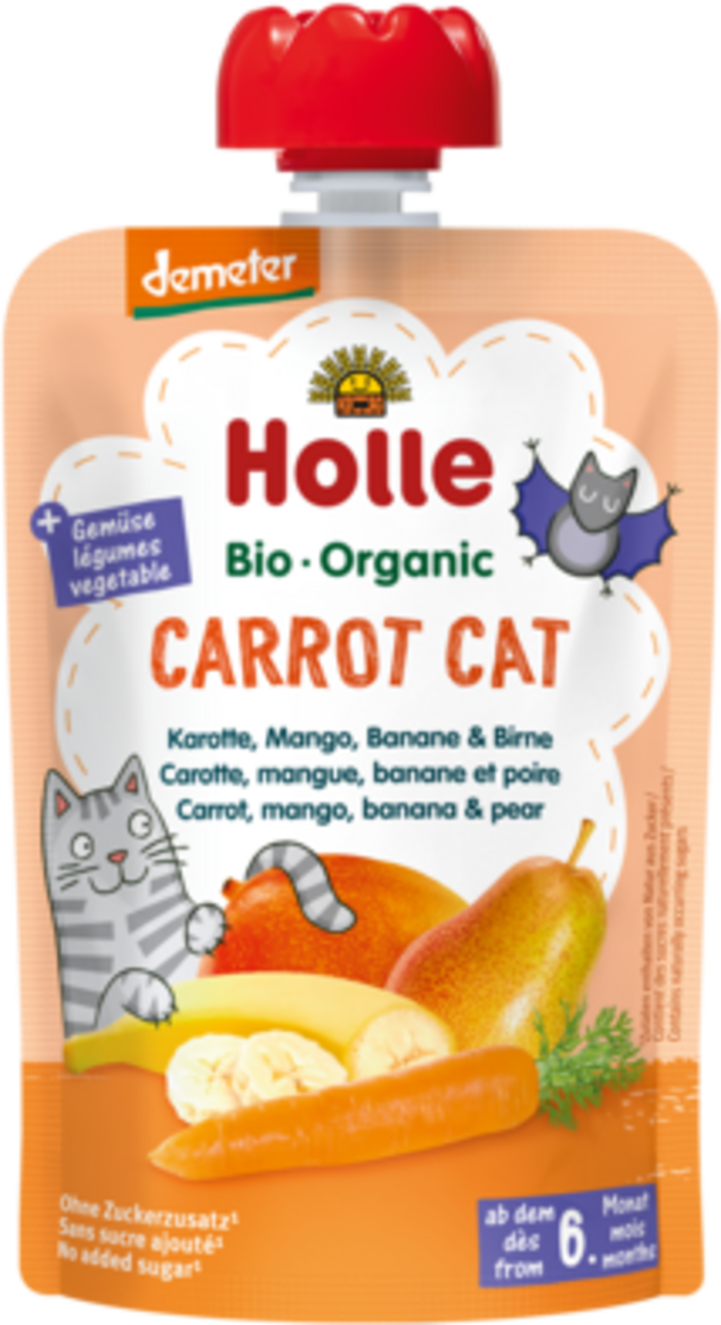 Holle Carrot Cat - Pouchy Carota, Mango, Banana e Pera, 100 g