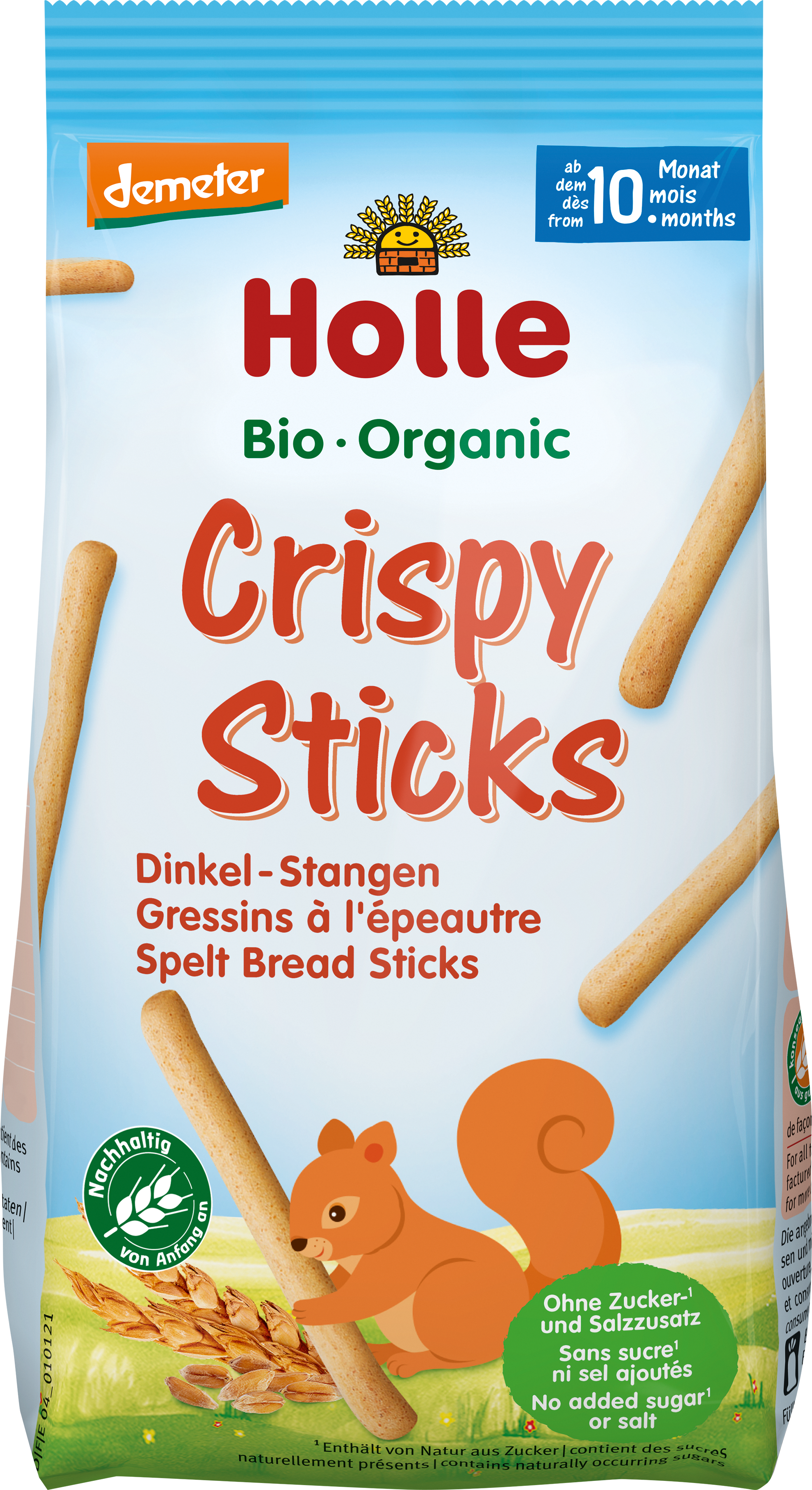 I Crispy Sticks di Holle sono realizzati con il pregiato grano Demeter. La forma speciale rende questi snack facili da afferrare per le manine dei più piccoli, e sono anche perfetti da mordicchiare con i primi denti. Il prodotto non contiene zuccheri o sale aggiunti ed è perfettamente studiato per le esigenze dei bambini.