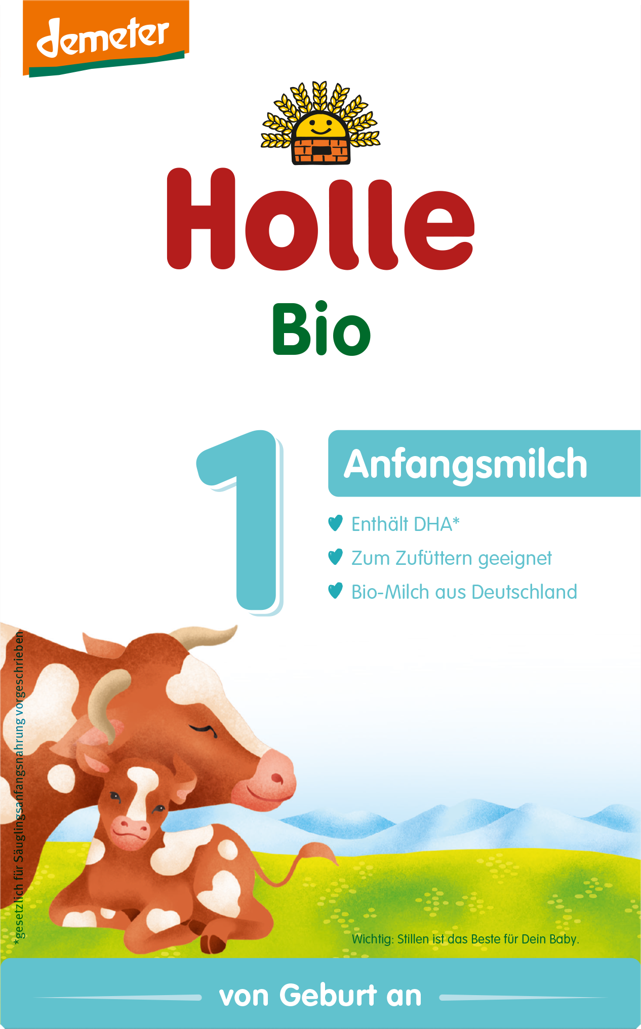 Produzione: per la formula per lattanti 1 viene utilizzato solo latte Demeter di alta qualità. Gli agricoltori Demeter tengono conto delle caratteristiche specifiche delle specie di piante e animali. La dolorosa decornazione degli animali non viene praticata. Gli animali pascolano su prati coltivati biodinamicamente, dove si nutrono liberamente: questa è la garanzia dell'alta qualità del latte negli alimenti a base di latte di Holle.