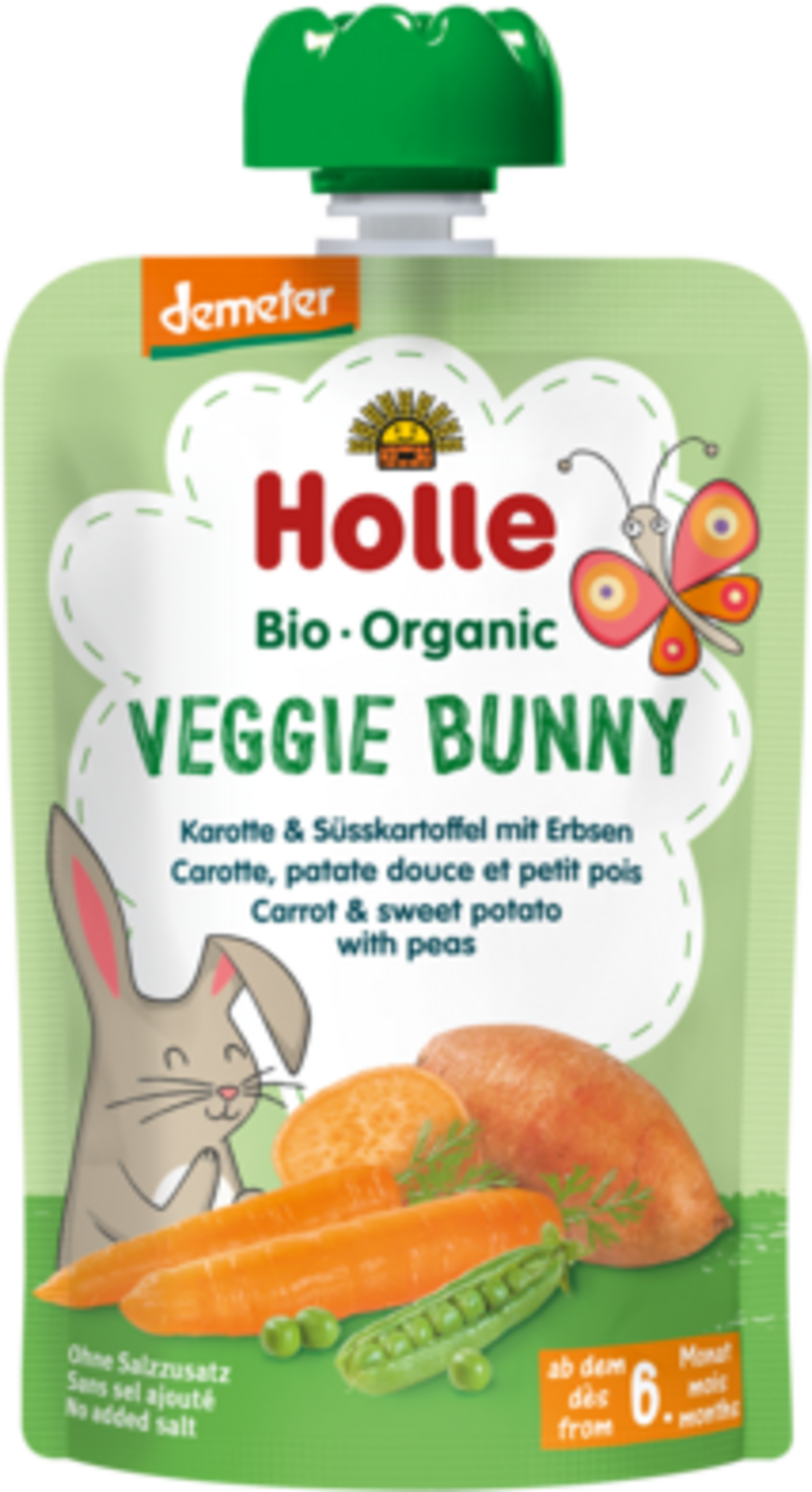 Holle Veggie Bunny - Pouchy Carota, Patate Dolci e Piselli, 100 g