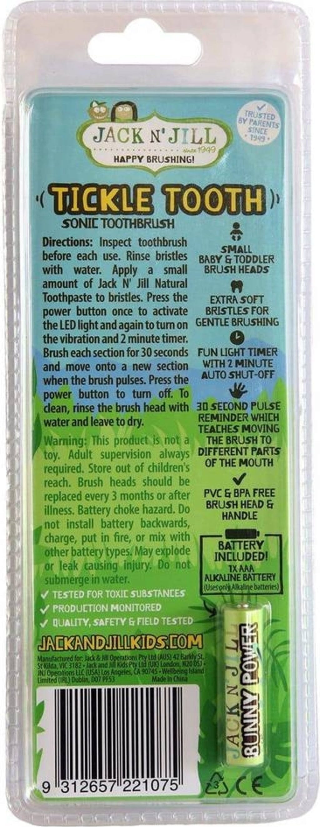 Jack N' Jill Tickle Tooth Spazzolino Elettrico Sonico per Bambini