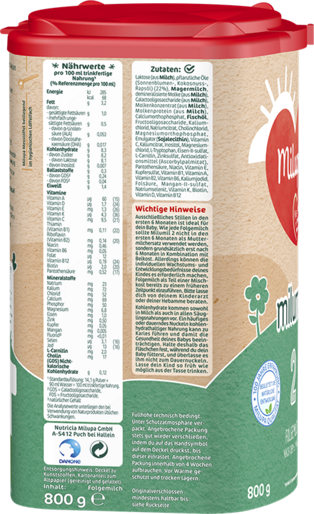 | Operatore del settore alimentare responsabile: | Nutricia Milupa GmbH, Halleiner Landesstr. 58, 5412 , Puch/Hallein, Austria, www.milupa.at |