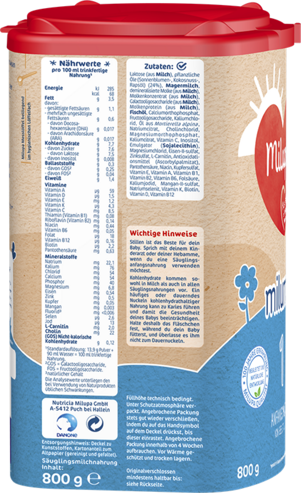 | Operatore del settore alimentare responsabile: | Nutricia Milupa GmbH, Halleiner Landesstr. 58, 5412 , Puch/Hallein, Austria, www.milupa.at |