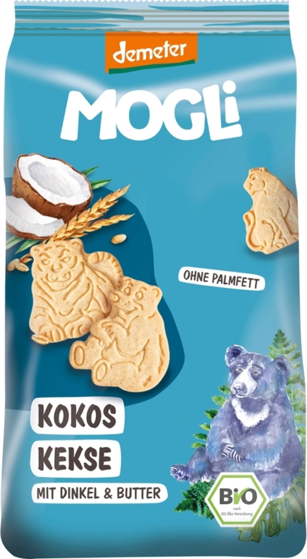 Ideali per chi ama la varietà e i sapori esotici, questi classici biscotti al burro sono arricchiti con cocco che conferisce loro un meraviglioso aroma tropicale. Mogli utilizza solo i migliori ingredienti da coltivazione Demeter, come farina di farro leggermente, scaglie di cocco e banana in polvere. Il prodotto è addolcito solo con sciroppo d'agave. I graziosi biscottini a forma di animali sono particolarmente apprezzati dai più piccoli.