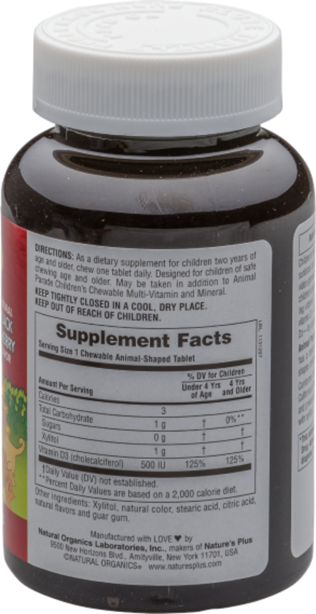 Nature's Plus Animal Parade Vitamin D3 (500 U.I.) - Senza Zucchero, 90 compresse masticabili
