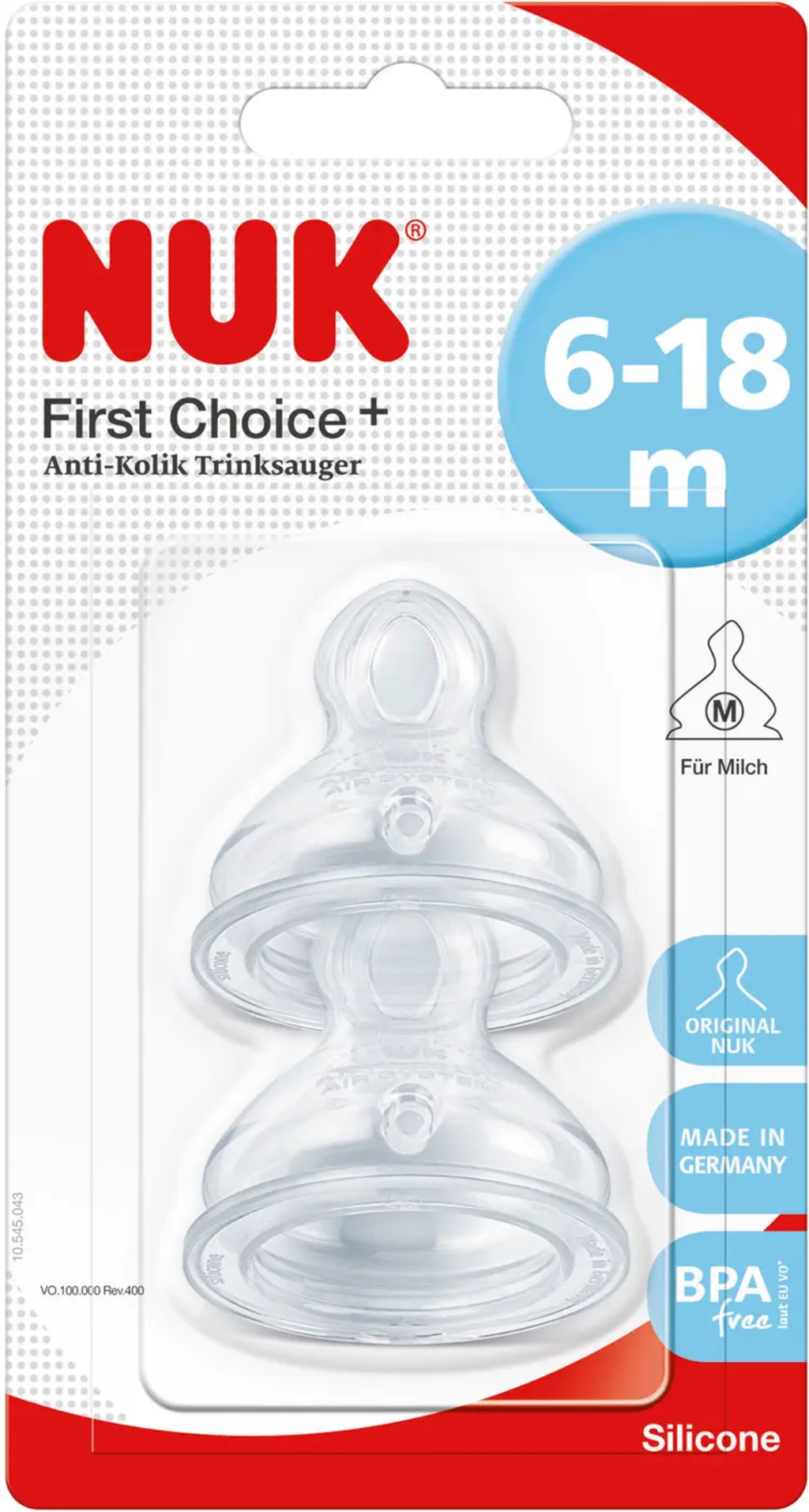 Con la tettarella First Choice Plus di NUK, ogni poppata diventa il più naturale possibile per il tuo bambino. La forma ortodontica, appositamente sviluppata, si ispira al seno materno. Grazie alla Softzone extra morbida, il silicone si adatta in modo ottimale al palato del bambino, offrendo una sensazione di suzione familiare e rassicurante. L'innovativo sistema Anti-Colic Air riduce l'ingestione di aria, favorendo pasti sereni.
