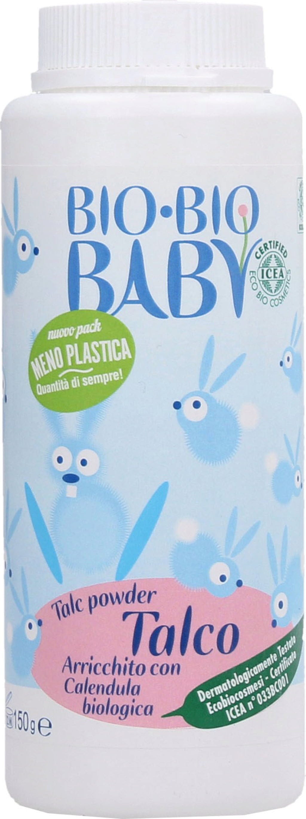 Il Talco Bio Bio Baby è dermatologicamente testato e dona alla pelle un piacevole effetto asciutto e pulito. Arricchito con estratto biologico di Calendula, la sua azione è lenitiva, rinfrescante, assorbente e protettiva. Dalla delicata profumazione priva di allergeni, il prodotto è ideale per la pelle sensibile dei bambini.