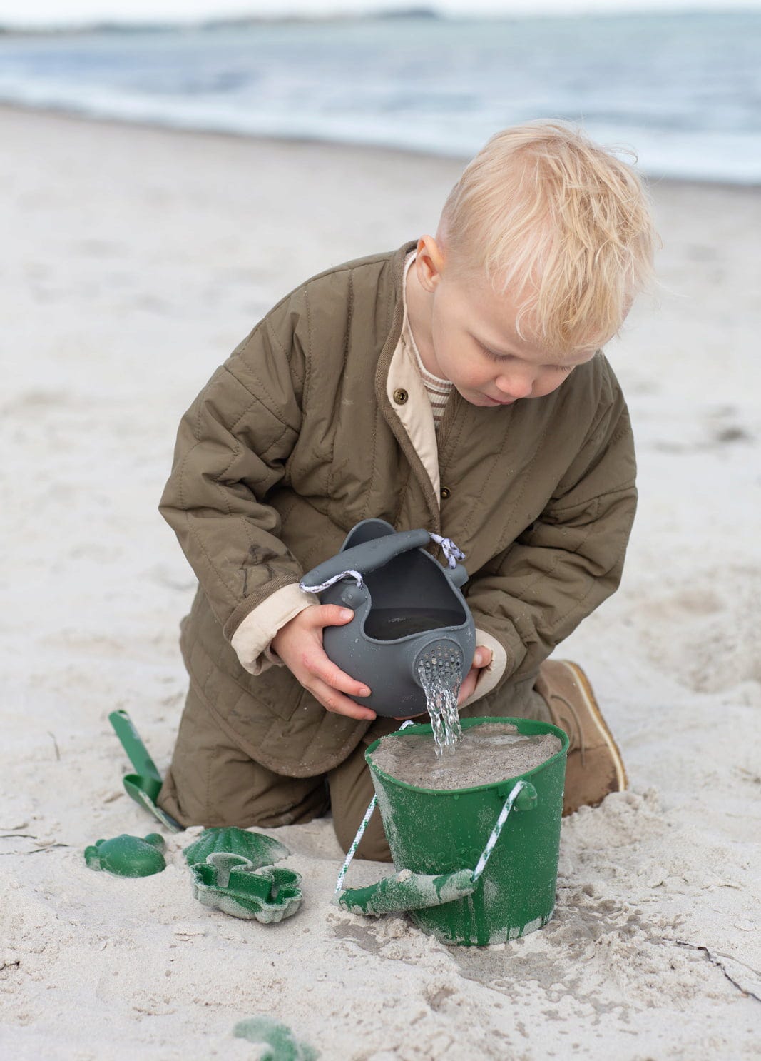 Con questo adorabile annaffiatoio, i piccoli giardinieri possono prendersi cura delle loro piante preferite, trasportare la sabbia o anche giocare nella vasca da bagno. Grazie al silicone, l'annaffiatoio si ripiega in modo compatto per essere inserito in qualsiasi bagaglio. Il manico collegato a una corda permette di equilibrare il peso quando si cammina, in modo da non rovesciare nulla.
