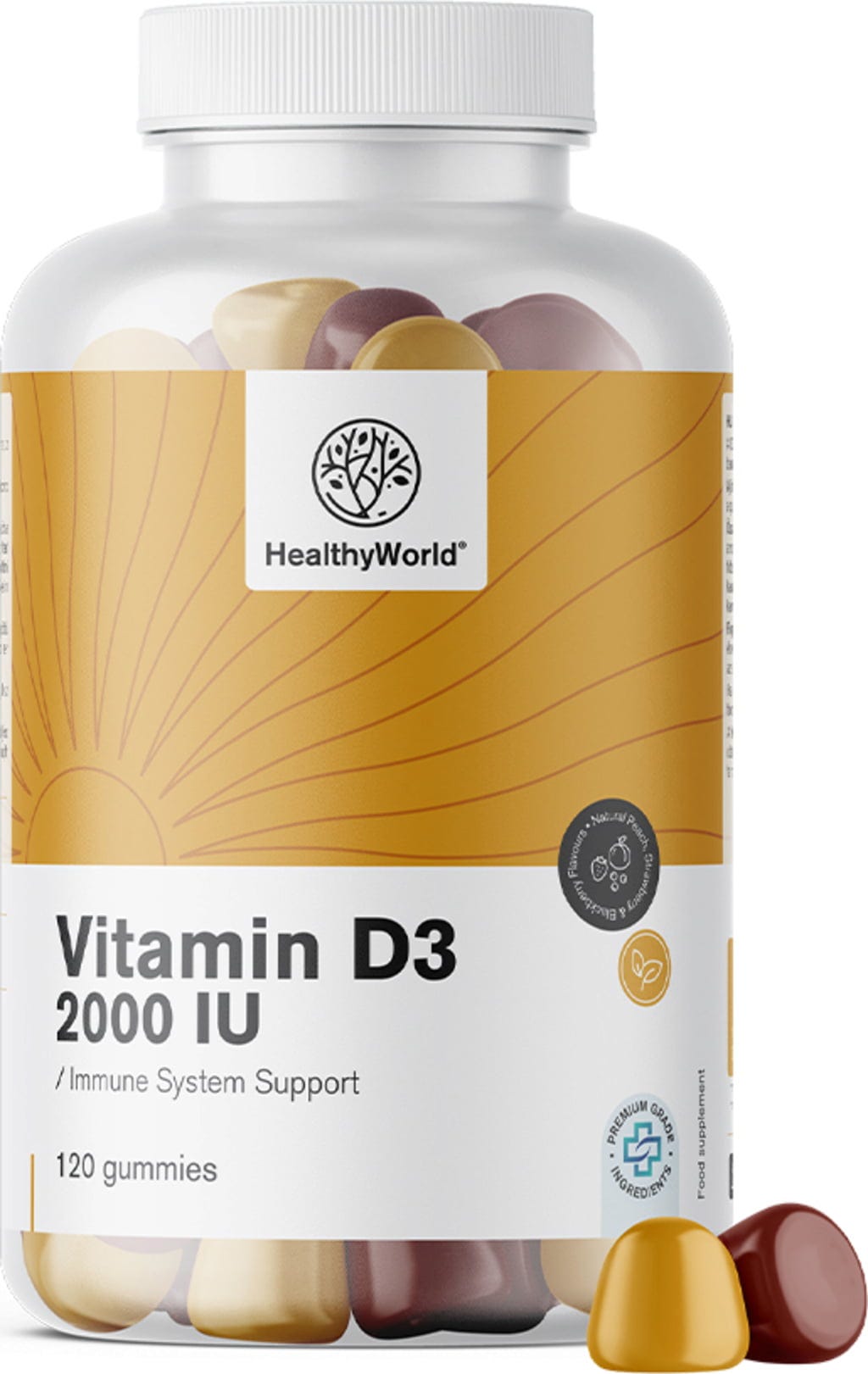 Queste gommose di HealthyWorld forniscono un alto dosaggio di vitamina D3. La vitamina D contribuisce al mantenimento di ossa normali. Le gommose rappresentano un'ottima alternativa a capsule e compresse, poiché sono facili da assumere. Si distinguono per il loro gusto fragola, pesca e mora e sono inoltre senza glutine.