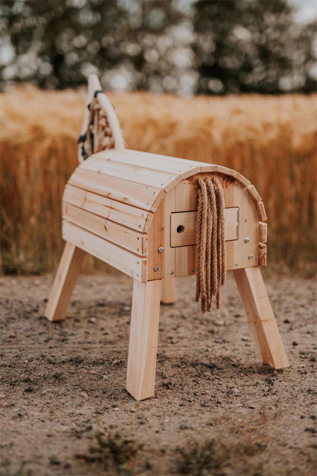 Questo cavallo di legno compatto conquisterà i giovani cavalieri con i suoi dettagli curati e le sue pratiche funzionalità. Che sia in giardino o nella cameretta dei bambini, il legno grezzo invita a un design creativo e lo spazio integrato per riporre gli oggetti mantiene la stalla in ordine.