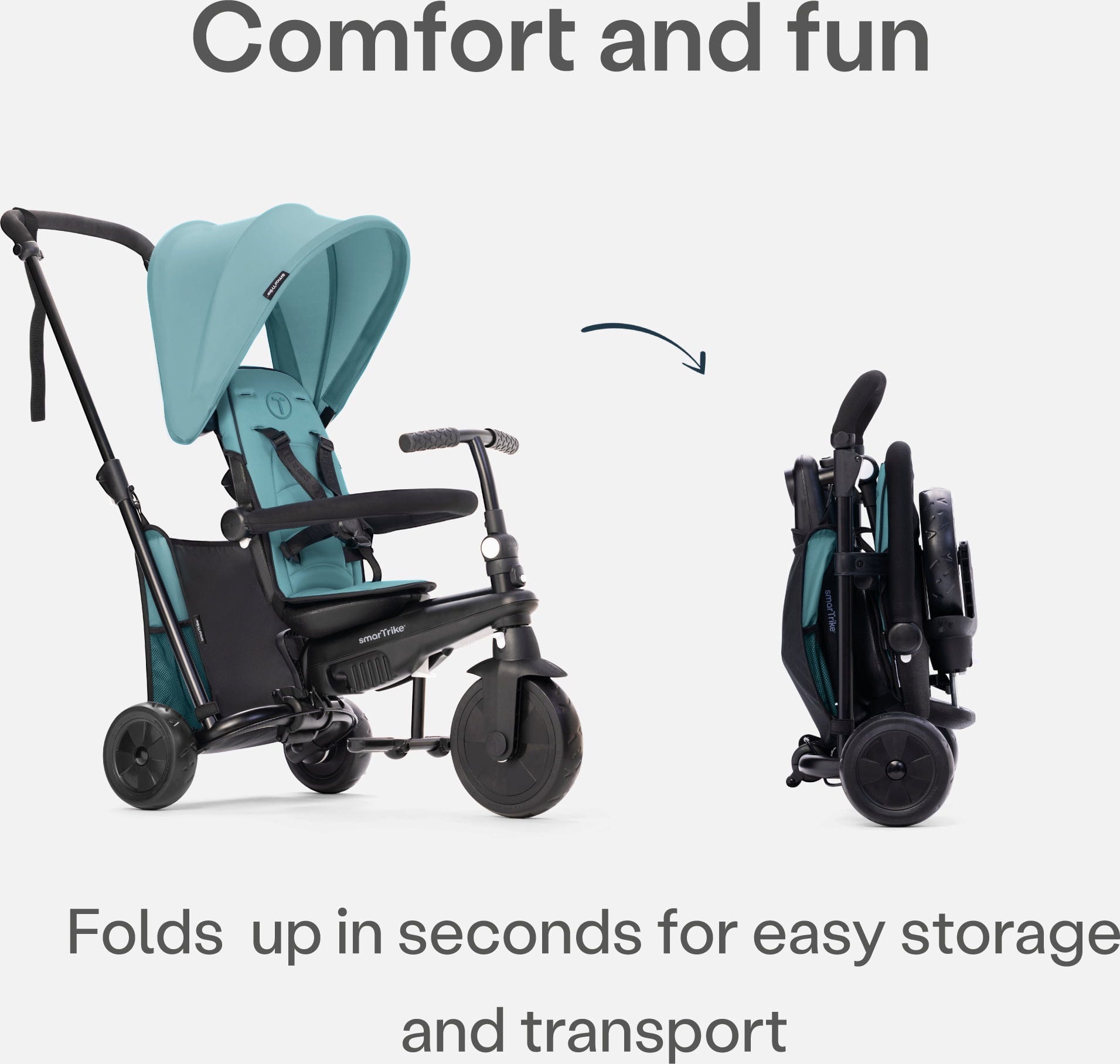 Sei alla ricerca di una soluzione che unisca gli elevati standard di sicurezza di un passeggino al divertimento di un triciclo? Lo smarTrike STR3 è un innovativo stroller-trike sviluppato secondo gli standard dei passeggini. A partire da circa 10 mesi, il tuo bambino gode di elevata protezione e comfort, mentre tu puoi guidare il mezzo con precisione e con il minimo sforzo grazie alla tecnologia brevettata Touch Steering®.