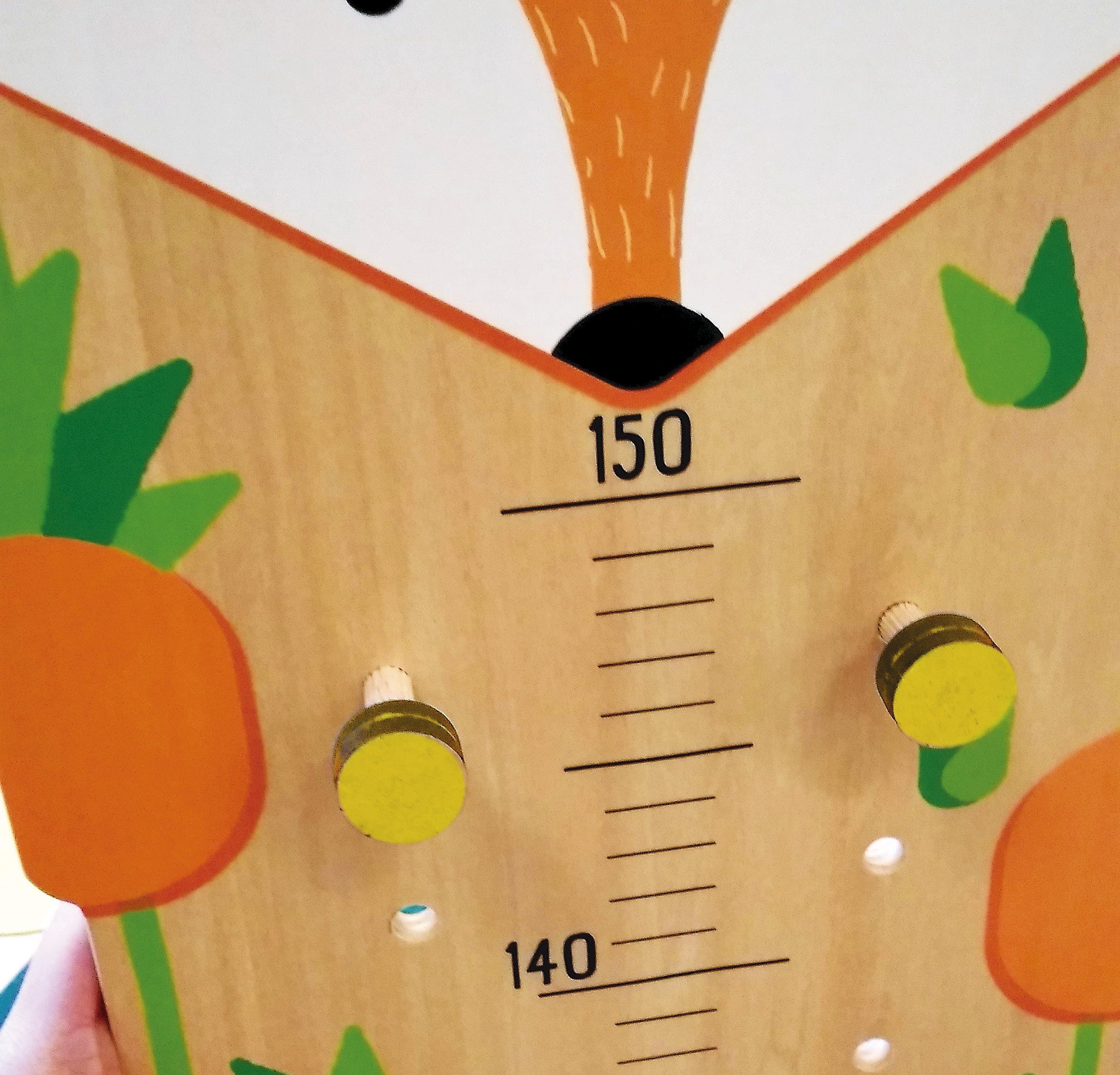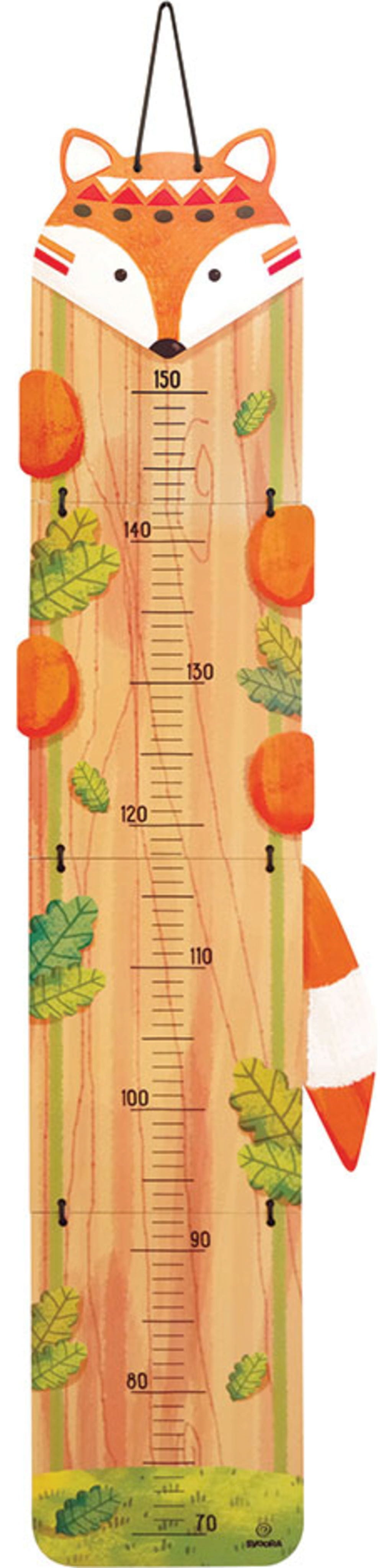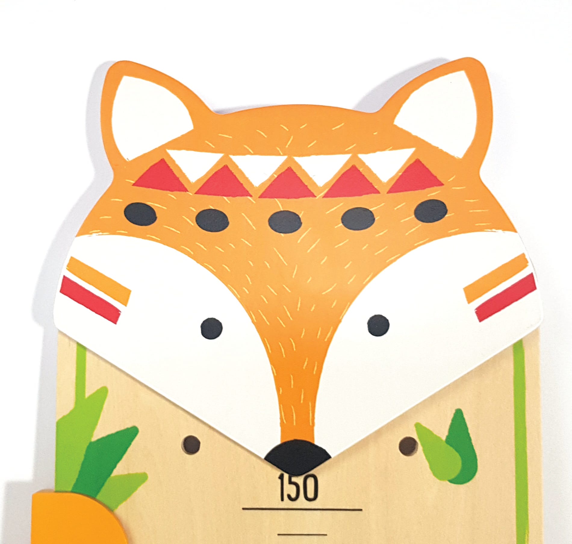 La volpe intelligente sa sempre quanto misuri. Stringe questo metro dal look in legno naturale e ti guarda incuriosito. Puoi segnare la tua altezza al millimetro con frecce di legno che si attaccano facilmente alle aperture predisposte. Sono incluse quattro parti, corde per collegare o appendere il metro da parete e sette pennarelli.