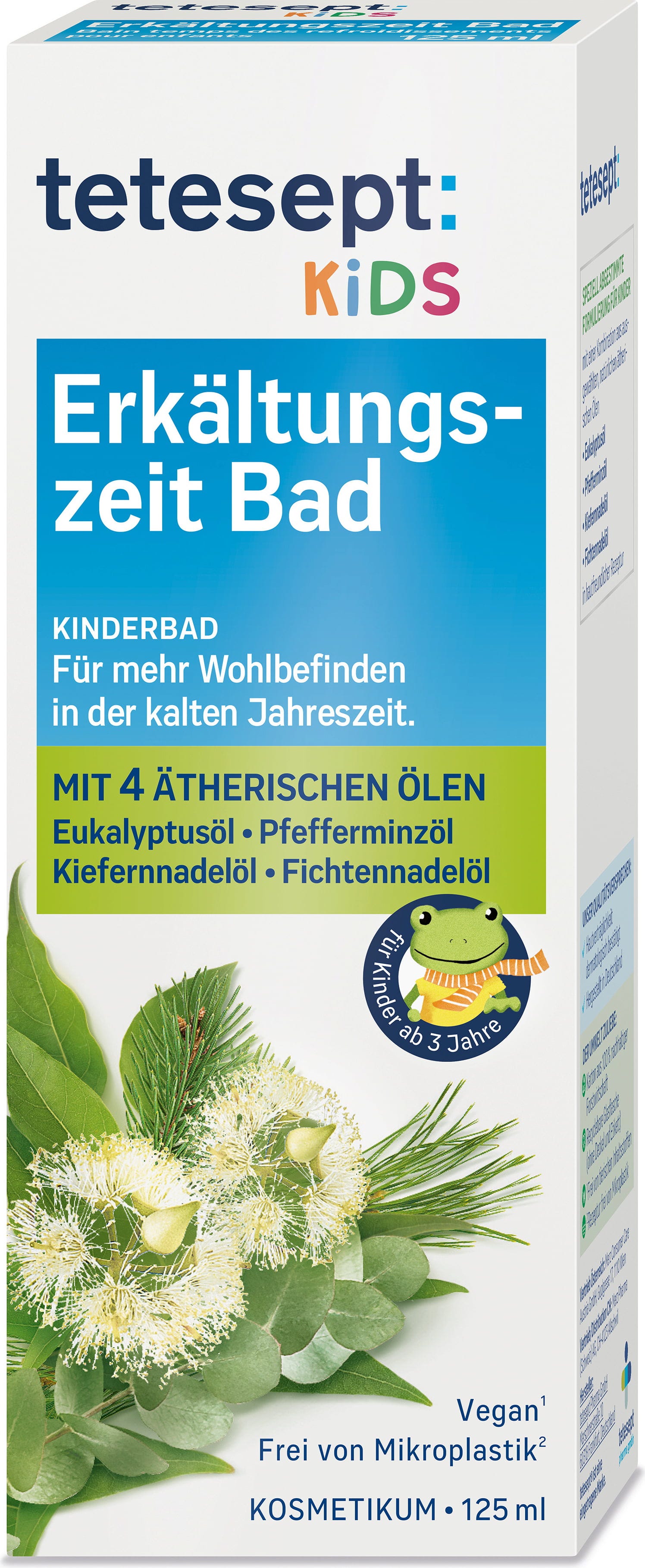 Dopo ore di gioco all'aperto, il Kids - Bagno Raffreddore di Tetesept assicura ai bambini infreddoliti di tornare piacevolmente caldi! È ideale per bambini dai 3 anni in su e contiene preziosi oli essenziali di eucalipto, menta piperita, aghi di pino, abete rosso e canfora.