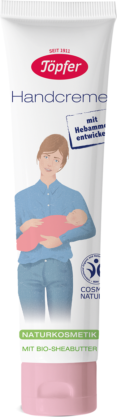 La crema per le mani di Töpfer è stata sviluppata in collaborazione con un'ostetrica e garantisce una pelle elastica e morbida. La formula innovativa a base di burro di karité, crusca di frumento ed estratto di camomilla biologici nutre le mani e fornisce una preziosa idratazione mentre la formula si assorbe rapidamente.