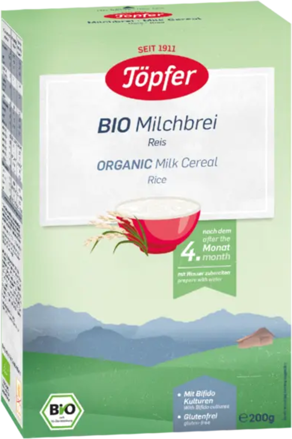 La pappa lattea bio con fiocchi di riso è ideale a partire dal quinto mese e costituisce il complemento perfetto lo svezzamento del tuo bambino. Con latte biologico e riso pregiato da agricoltura biologica certificata, la ricetta di Töpfer convince per la sua consistenza cremosa e il gusto delicato, adattato appositamente alle esigenze dei piccoli buongustai. La ricetta senza glutine con fermenti lattici naturali di bifido rende la pappa ideale per ogni momento della giornata.