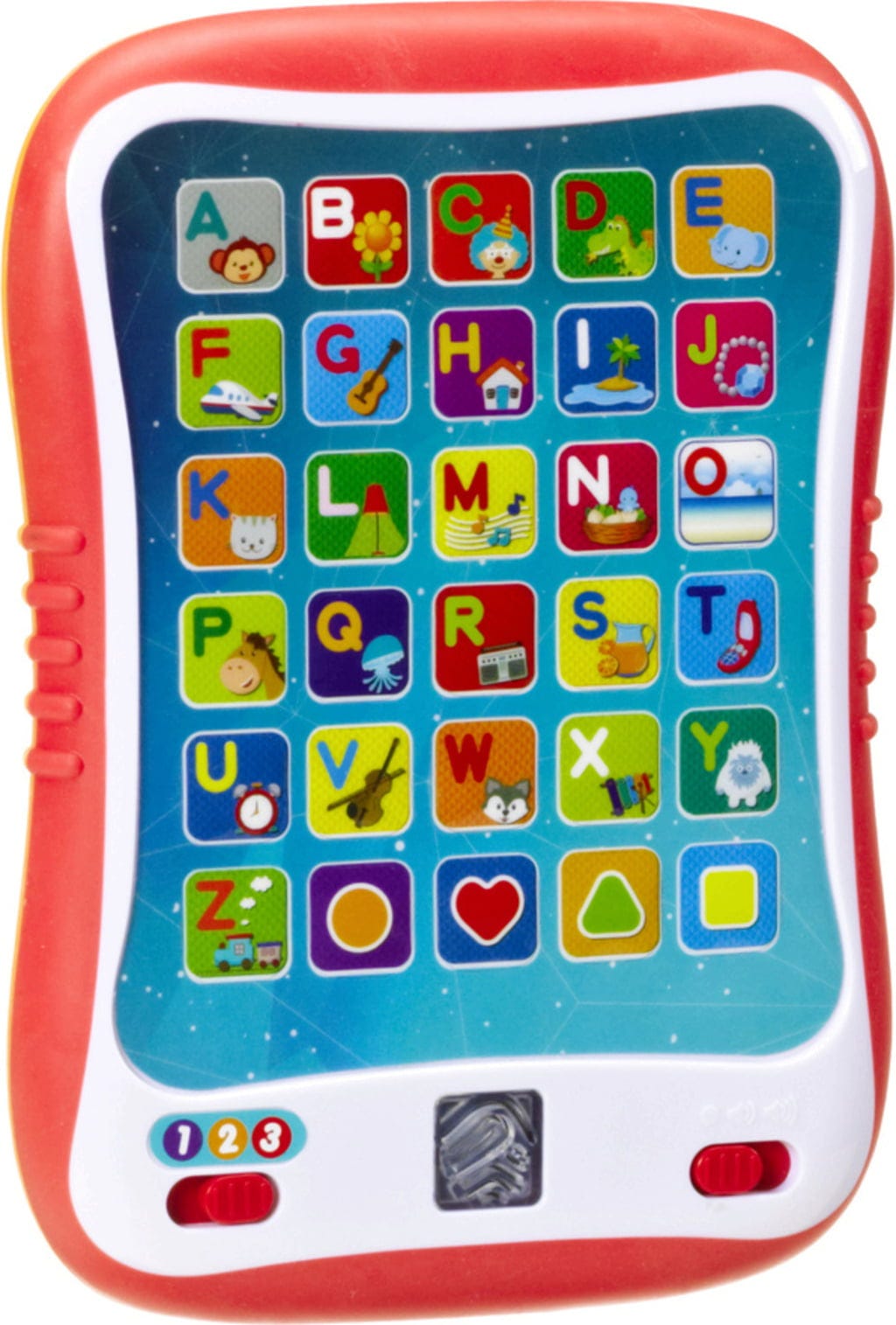 Anche i bambini piccoli amano giocare con i dispositivi tecnologici. Con questo Fun Pad adatto ai bambini, i piccoli a partire dai 12 mesi ricevono il proprio tablet con il quale possono imparare l'alfabeto e i colori in modo giocoso. Questo mini tablet conquista per le melodie divertenti, gli effetti di luce accattivanti e l'ergonomia adattata alle mani dei bambini.