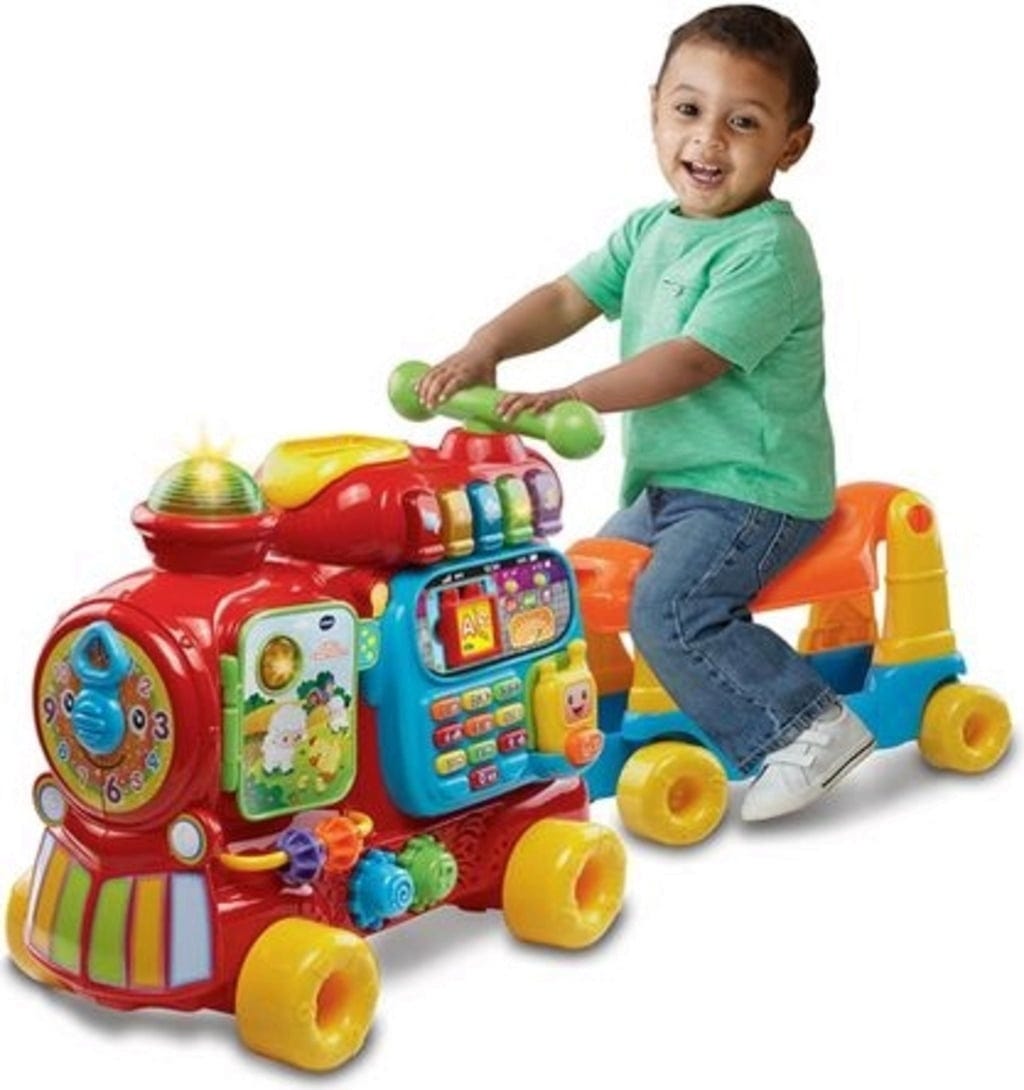 Attenzione, sta arrivando il trenino! Scopri numeri, lettere, colori, animali e molto altro. Con questo trenino puoi inoltre ascoltare le canzoncine, impilare i blocchi di lettere, rispondere alle chiamate importanti con il walkie-talkie giocattolo, trasportare il tuo giocattolo preferito. Un set colorato che offre un divertimento senza fine