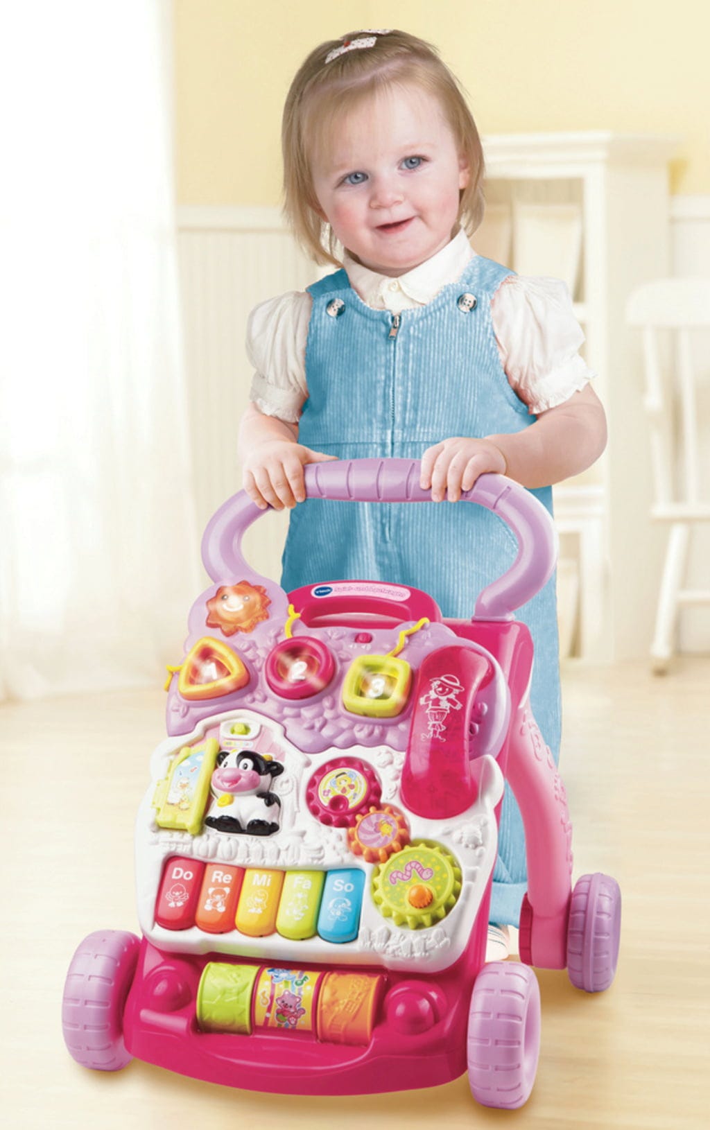 Questo favoloso carrello supporta i piccoli esploratori nei loro primi passi nella stanza dei bambini. Se i bambini gattonano, si può rimuovere la tavoletta da gioco dal supporto. Gli elementi mobili, il telefono giocattolo e i pulsanti musicali colorati tengono lontana la noia e incoraggiano le capacità motorie in modo giocoso.