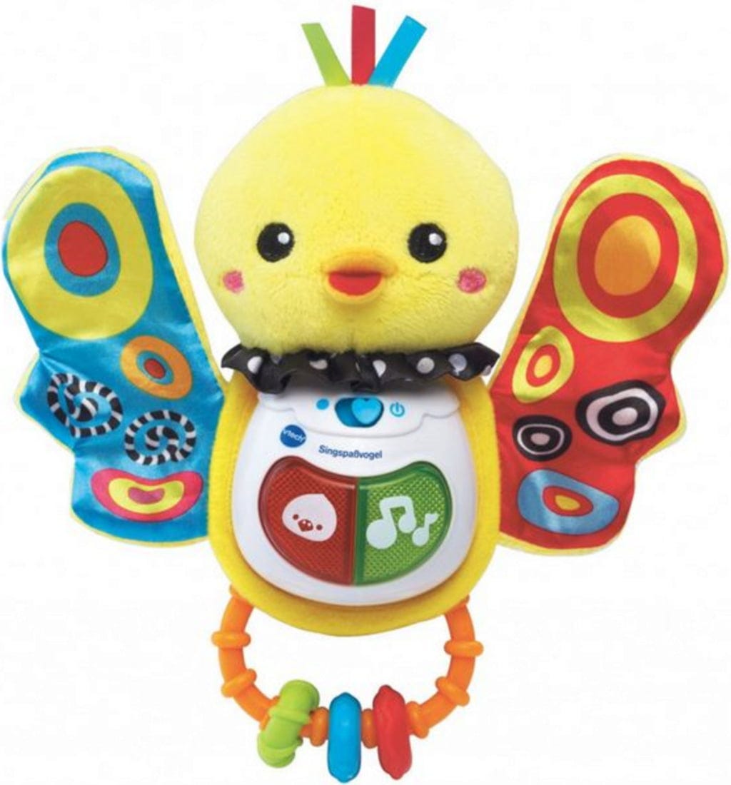 I bambini si innamoreranno subito di questo dolce uccellino, che offre molto divertimento, soprattutto fuori casa con il passeggino. I due pulsanti luminosi riproducono divertenti filastrocche e frasi divertenti e, quando l'uccellino viene scosso, emette una risposta sonora.