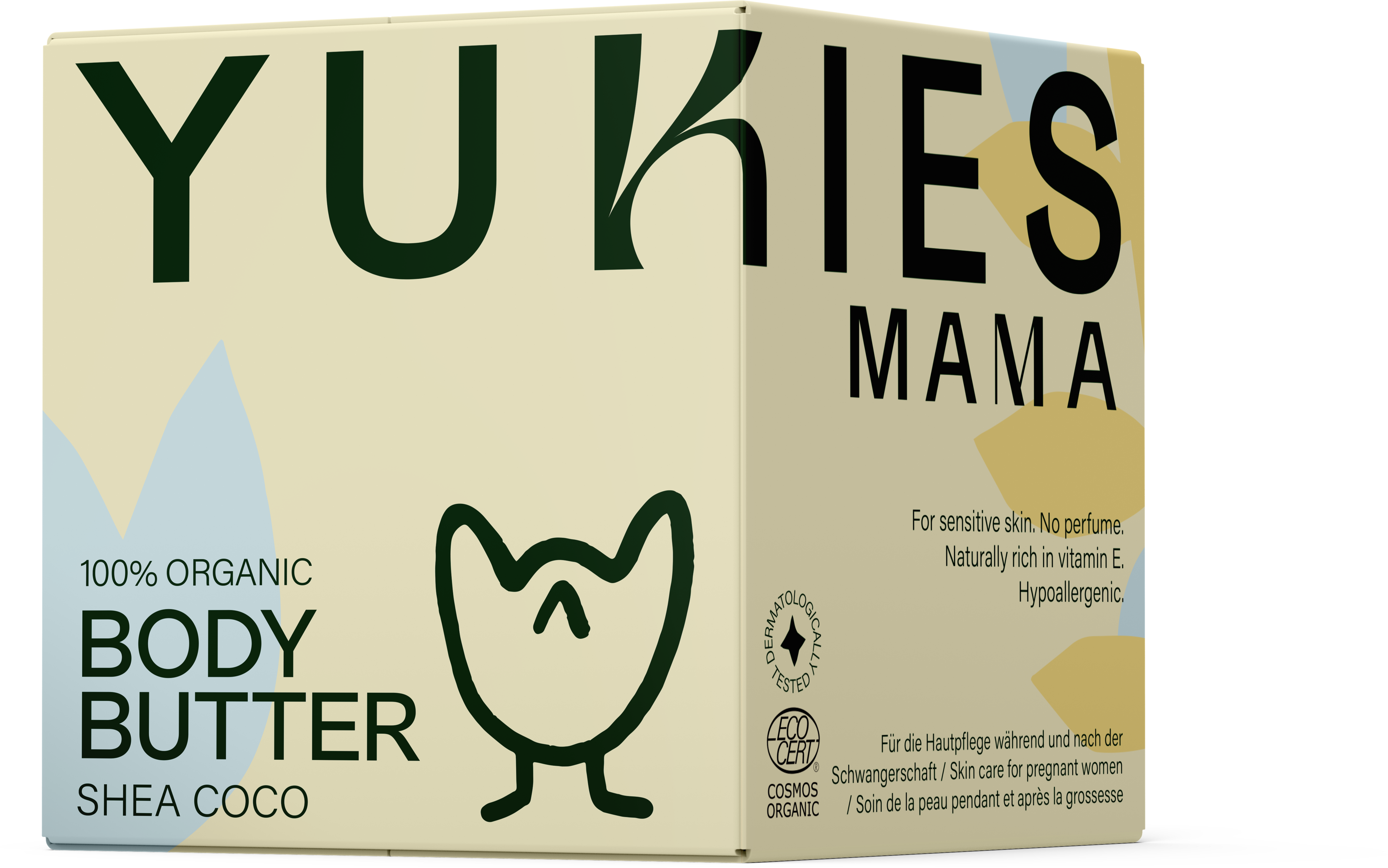 Il Body Butter di Yukies nutre la pelle sensibile ed è perfetto durante e dopo la gravidanza.