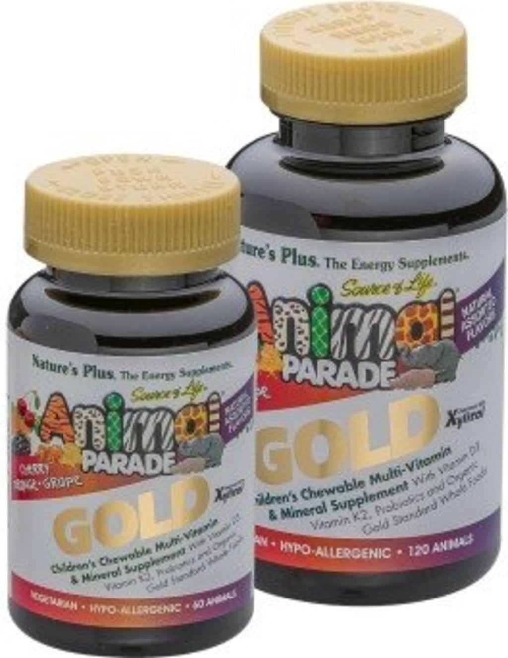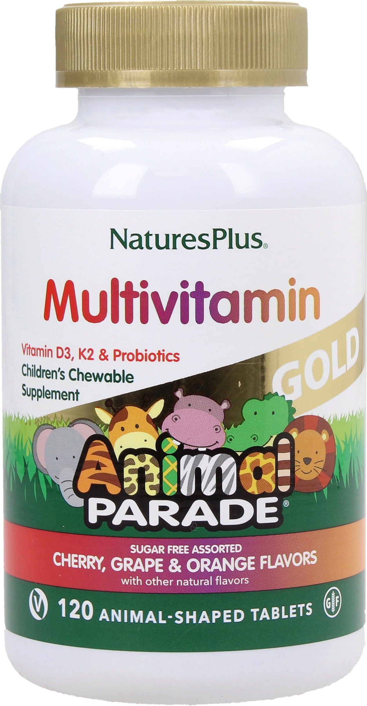 - Animal Parade GOLD ist ein preisgekröntes, zuckerfreies Vitamin- und Mineralstoff-Multi, dessen Zusammensetzung speziell auf die Bedürfnisse von Kindern abgestimmt ist. Basierend auf der original Animal Parade Formel ist es erweitert um die Vitamine D3 und K2, Selen, Chrom, Enzyme, Probiotika und über 20 Vollwertkonzentrate.