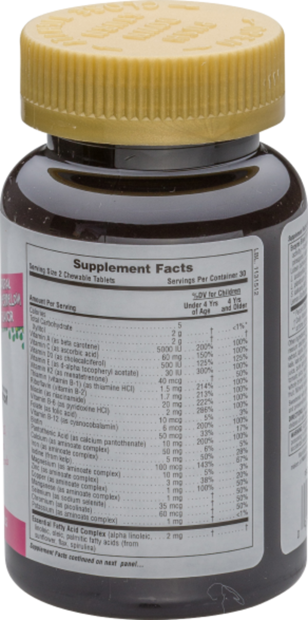 Essentielle Fettsäuren Komplex (Alpha-Linolensäure (ALA), Alpha-Linolensäure (ALA), Ölsäure, Palmitinsäure), Enzym-Mischung (Amylase, Lactase, Lipase, Bromelain, Papain, Cellulase, Protease), Xylit, natürlicher Farbstoff, Zitronensäure (E330), Guargummi, natürliches Aroma, Magnesiumstearat, Gold Standard Vollwertmischung (Acerola Extrakt-Pulver, Apfel, Brokkolisprossen, Blumenkohlsprossen, Kohl, Cordyceps (Raupenpilz) Pulver, Grünkohl, Grünkohlsprossen, Maitake Extrakt, Nessel, Petersilie, Zuckerrübensaft, Karotte, Spirulina Algenpulver, Reishi Pilzmycel, Shiitake Pilz, Spinat, Tomatensaft, Heidelbeeren, Blaubeere, Chlorella Pulver), Curcuma, Hagebutten, Vollkornreis, Brokkoli, Spinat, Mango, Karotte, Acerola Kirsche, Papaya