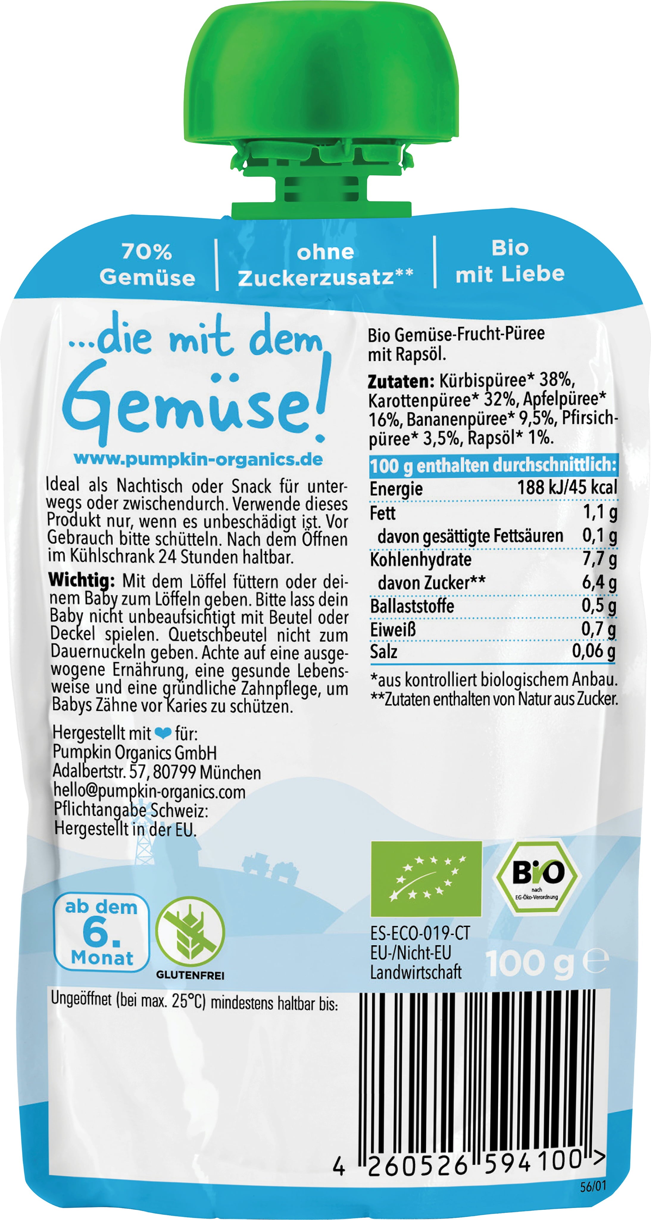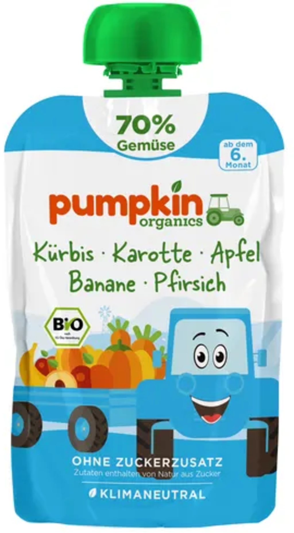 Pumpkin Organics Bio Quetschie 'Kürbis, Karotte, Apfel, Banane, Pfirsich', 100 g