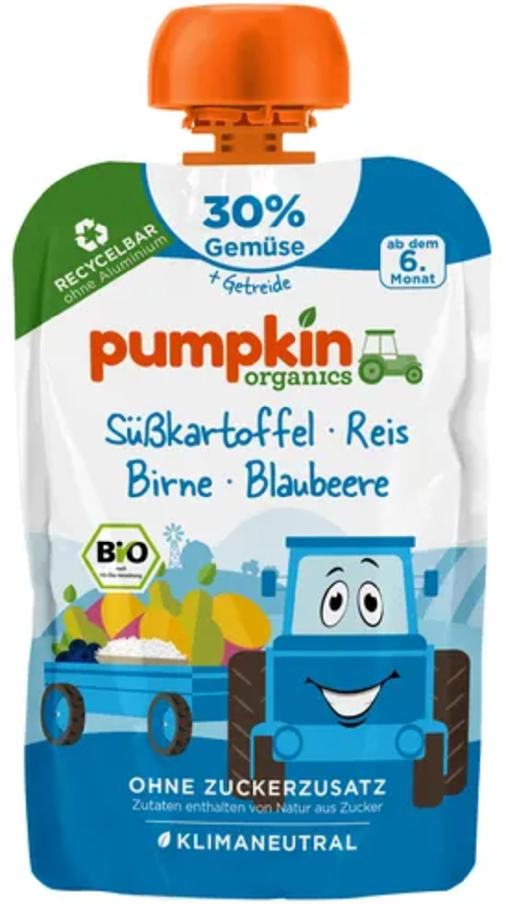 Pumpkin Organics Bio Quetschie 'Süßkartoffel, Reis, Birne, Blaubeere', 100 g