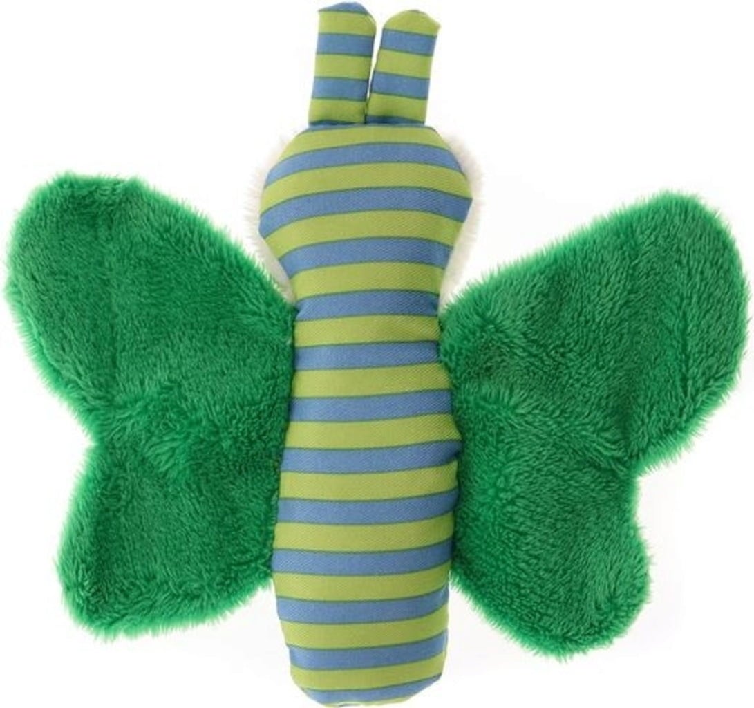 Der freundliche Schmetterling flattert aufgeregt von Blümchen zu Blümchen. Wenn du ihn zu fassen bekommst, raschelt die Knisterfolie im Inneren. Das hochwertige Material kann bedenkenlos ertastet und angenuckelt werden.