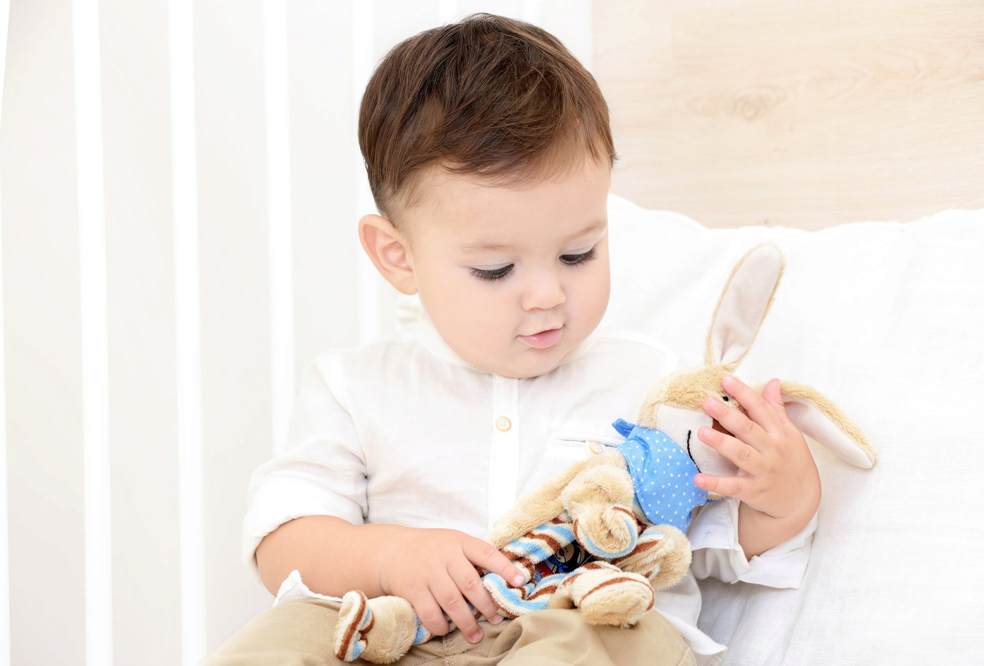 Kuschelig weich und kunterbunt präsentiert sich dieser fröhliche Begleiter. Mit seinen langen Ohren, den verknoteten Armen und Beinen sowie dem weichen Stoff bietet er viele Details, die es zu erkunden gilt. Ein toller Begleiter, mit dem das Einschlafen bestimmt gelingt!