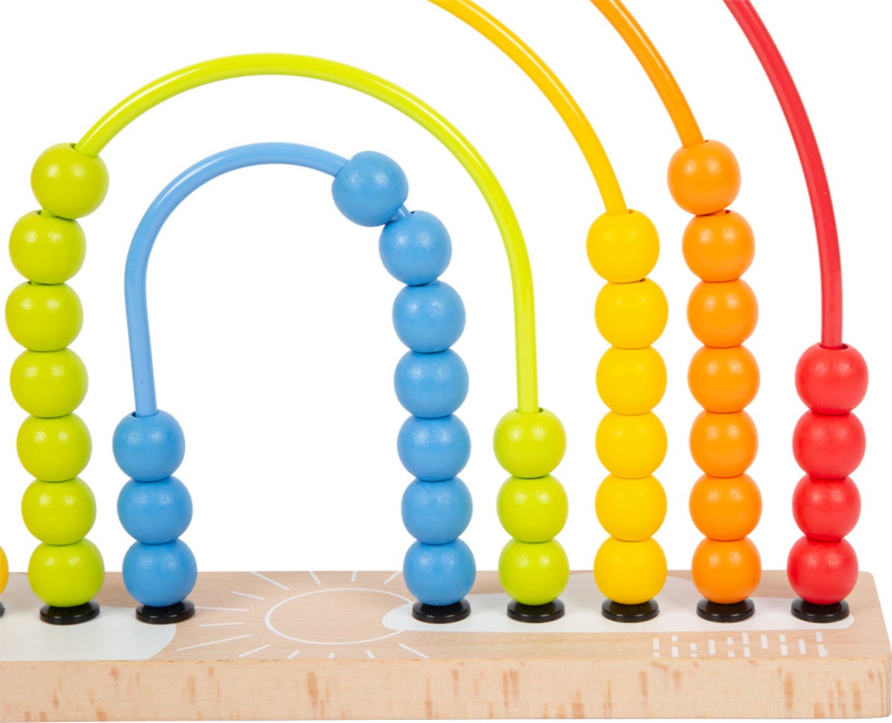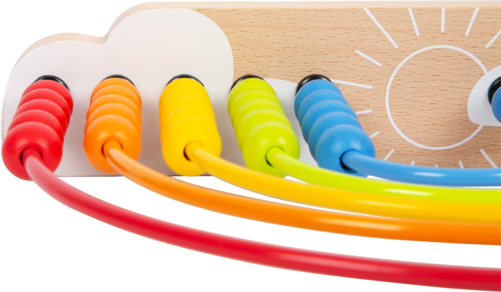 Dieser entzückende Regenbogen bringt Farbe in jede Kinderstube! Die ansprechenden Farben laden kleine Entdecker immer wieder dazu ein, die Holzperlen auf den farblich abgestimmten Bögen umherzuschieben. Das sorgt nicht nur für Unterhaltung, sondern hilft auch dabei, die feinmotorischen Fähigkeiten zu schulen. Auch größere Kinder werden von der Motorikschleife begeistert sein, da sie sich auch als Abakus einsetzen lässt, mit dem erste Zählversuche schon bald gelingen werden.